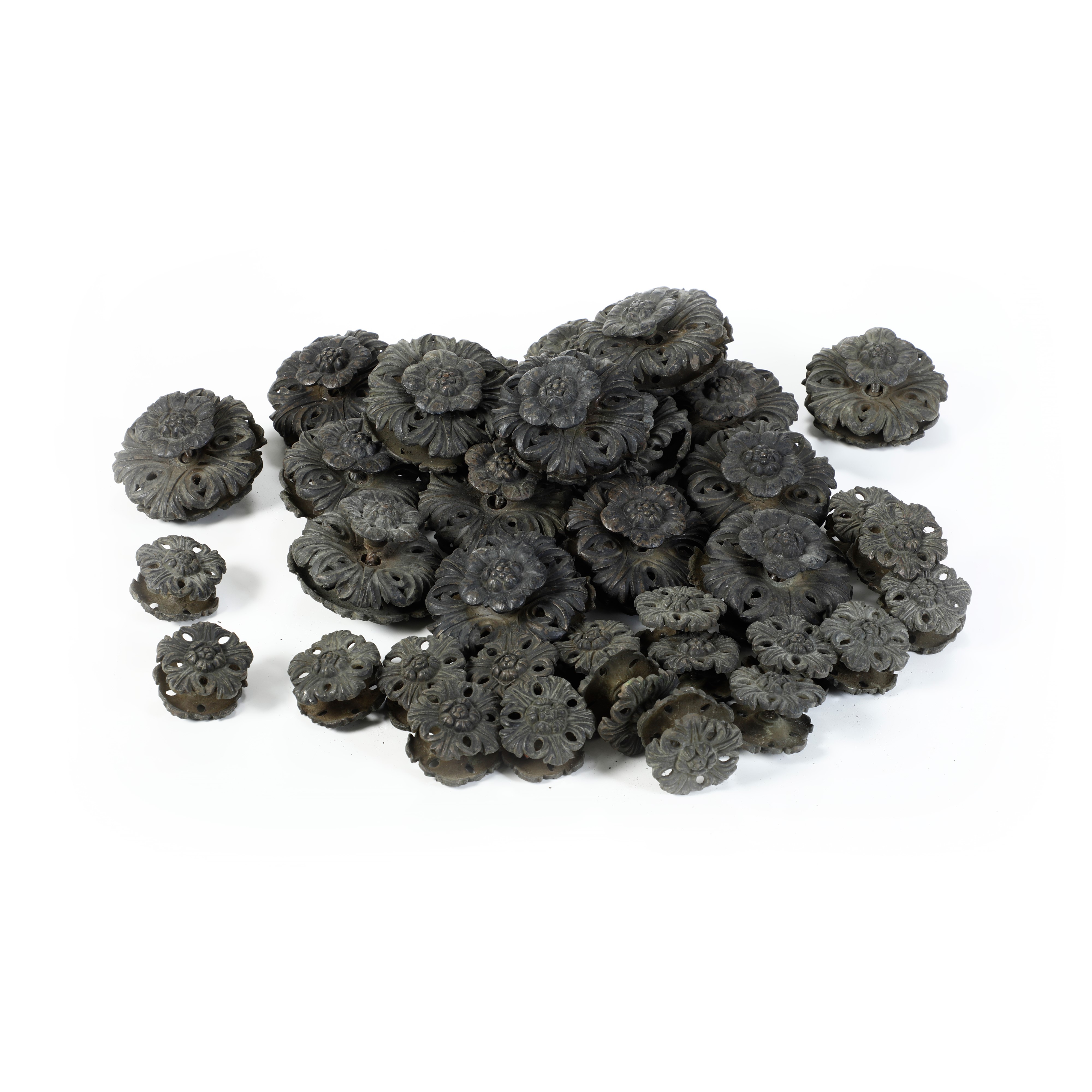 Insieme di 18 guarnizioni grandi e 18 guarnizioni piccole in bronzo a foggia di fiore, XIX-XX secolo