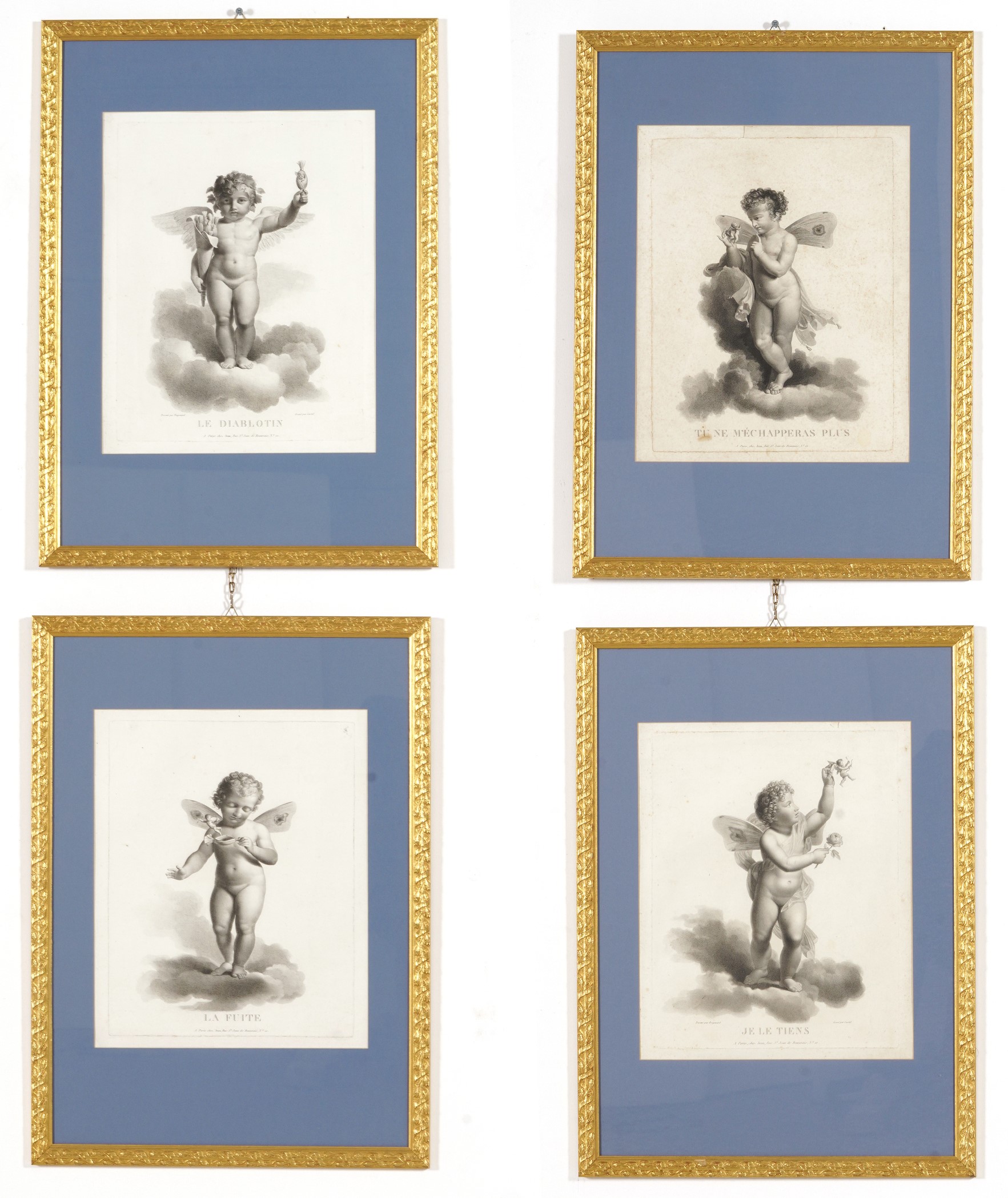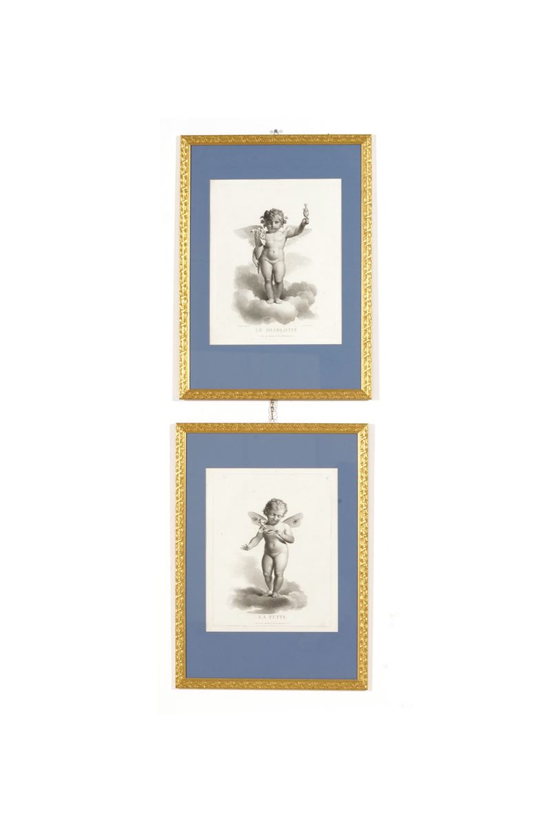 Quattro stampe con amorini. XIX secolo