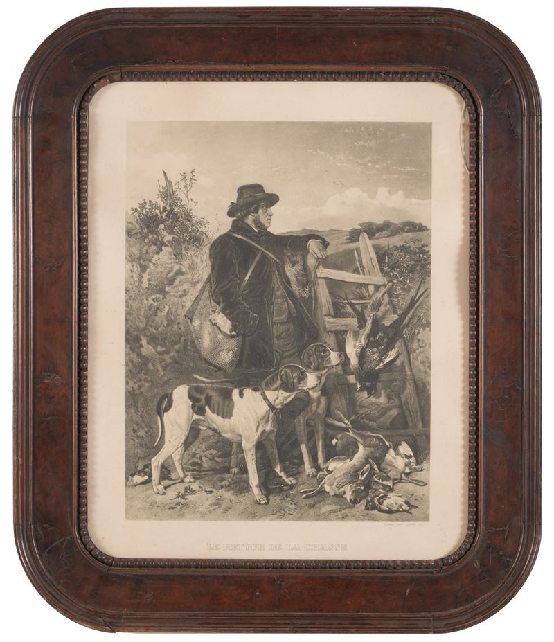 Stampa in cornice raffigurante cacciatore