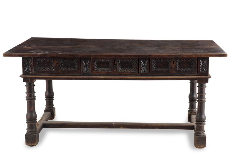 Tavolo da refettorio in legno intagliato. Spagna XVII-XVIII secolo