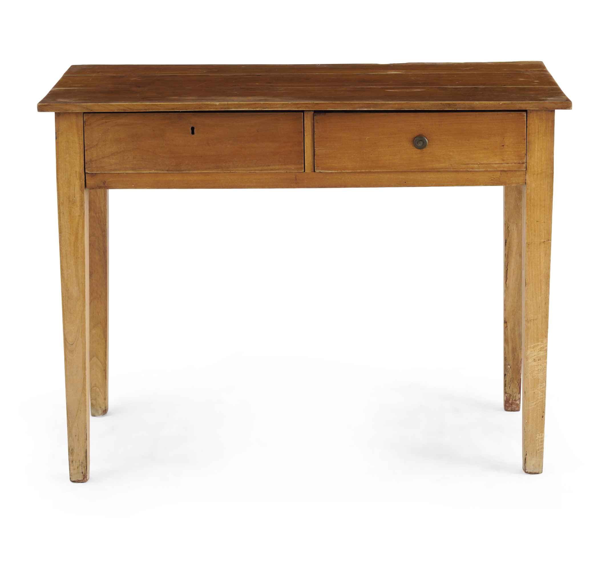 Tavolo in legno a due cassetti. XIX-XX secolo