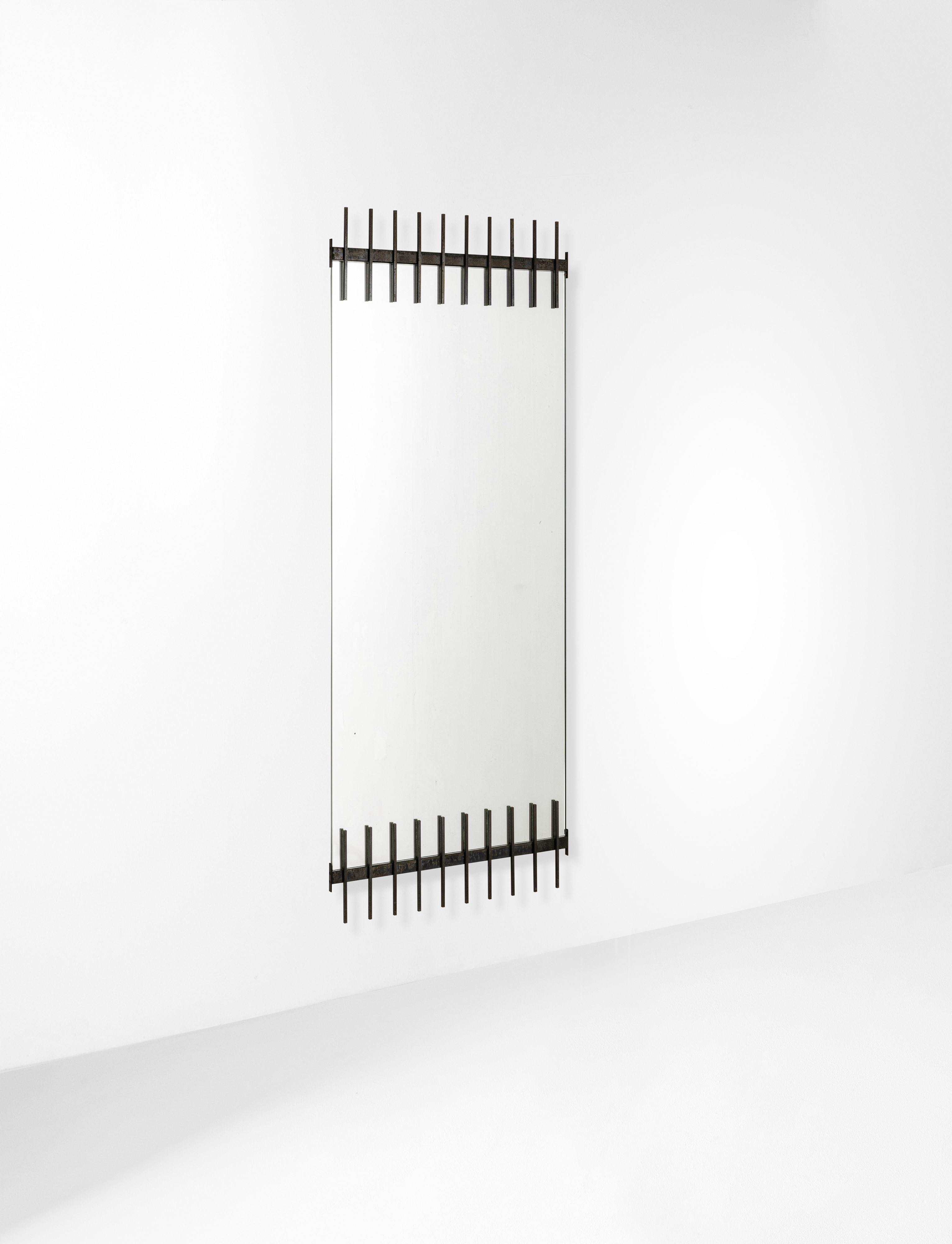 Struttura in ottone laccato e cristallo specchiato.