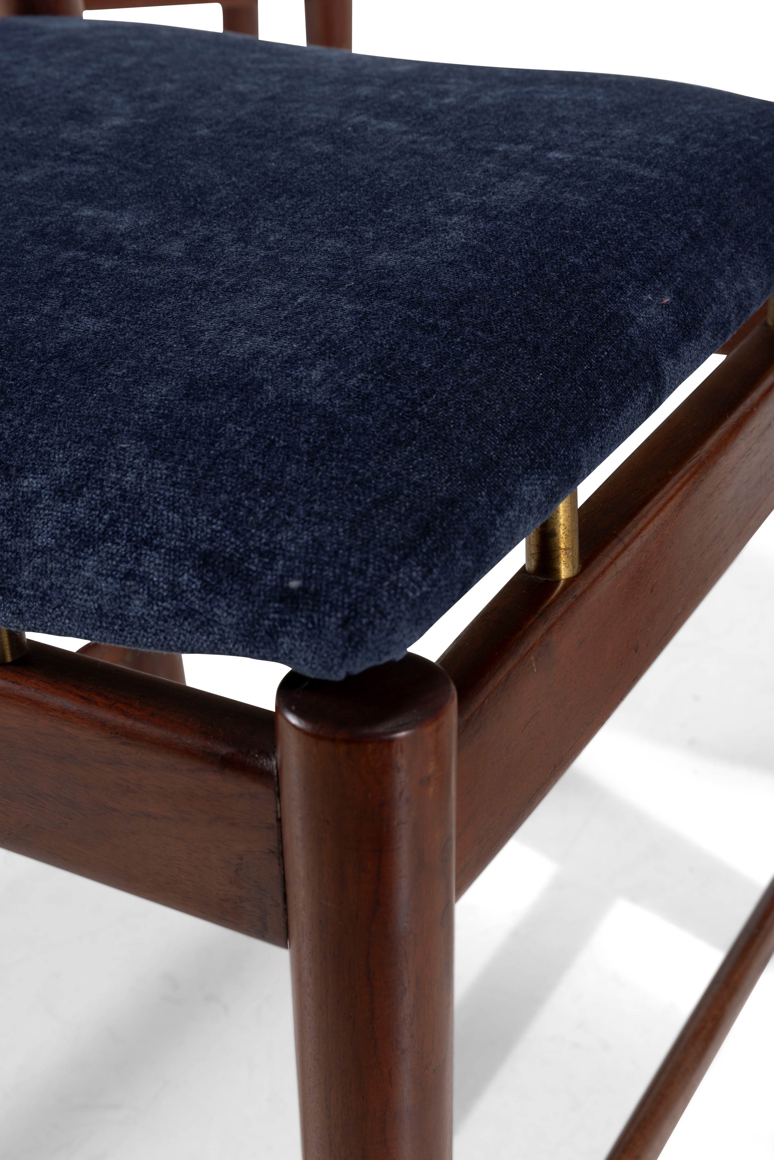 Struttura in legno e rivestimento in tessuto. Dettagli in ottone.