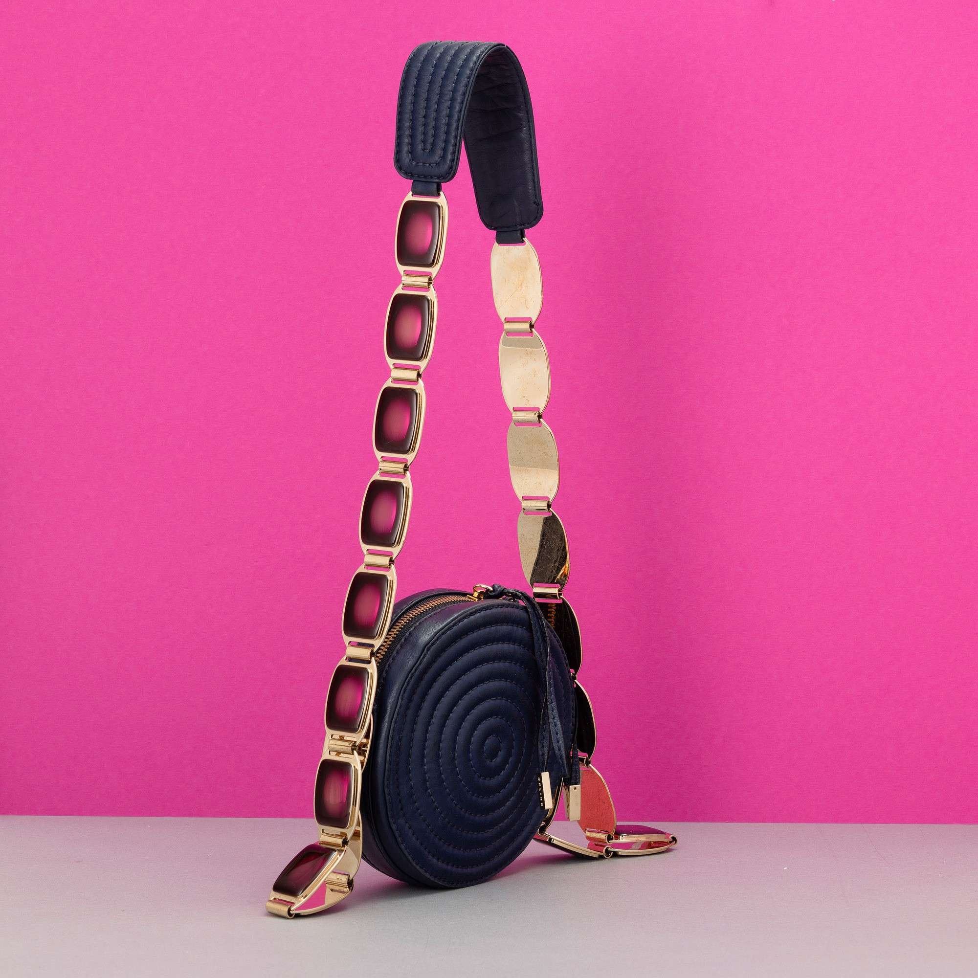 In pelle con grande tracolla gioiello, difetti