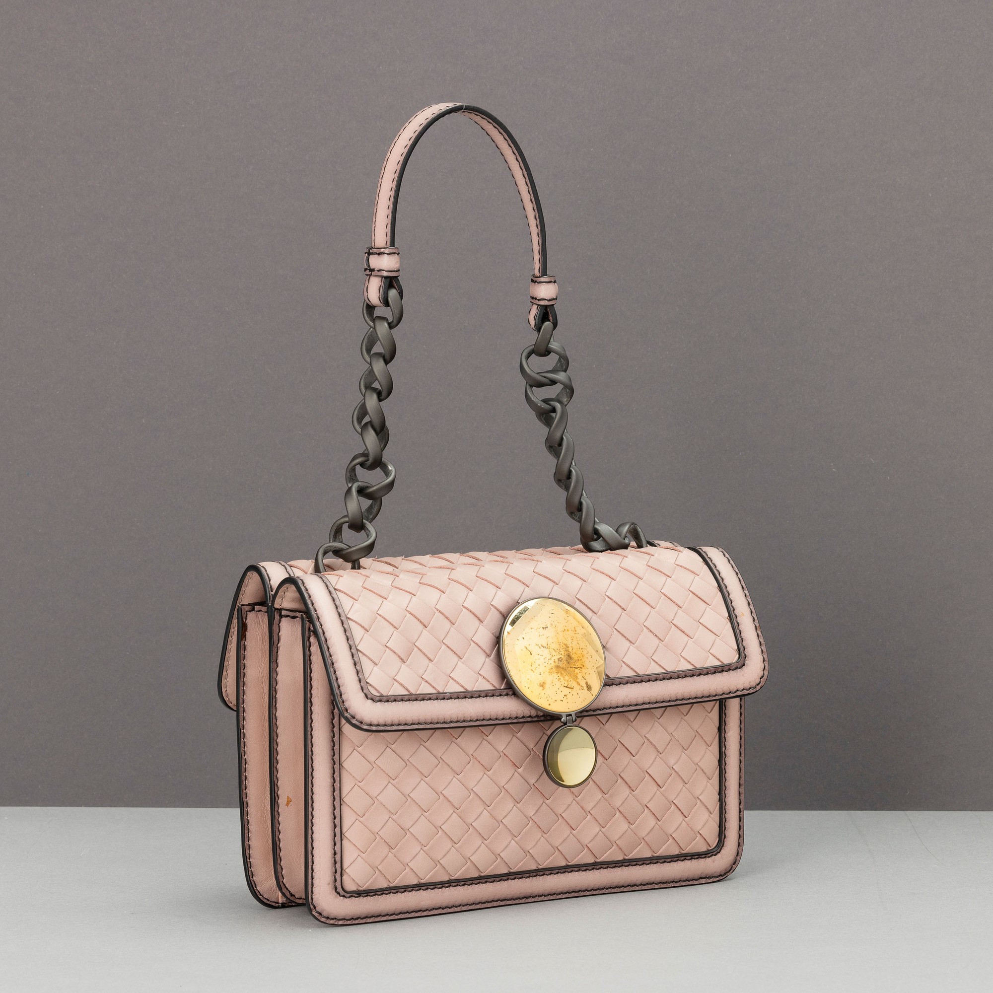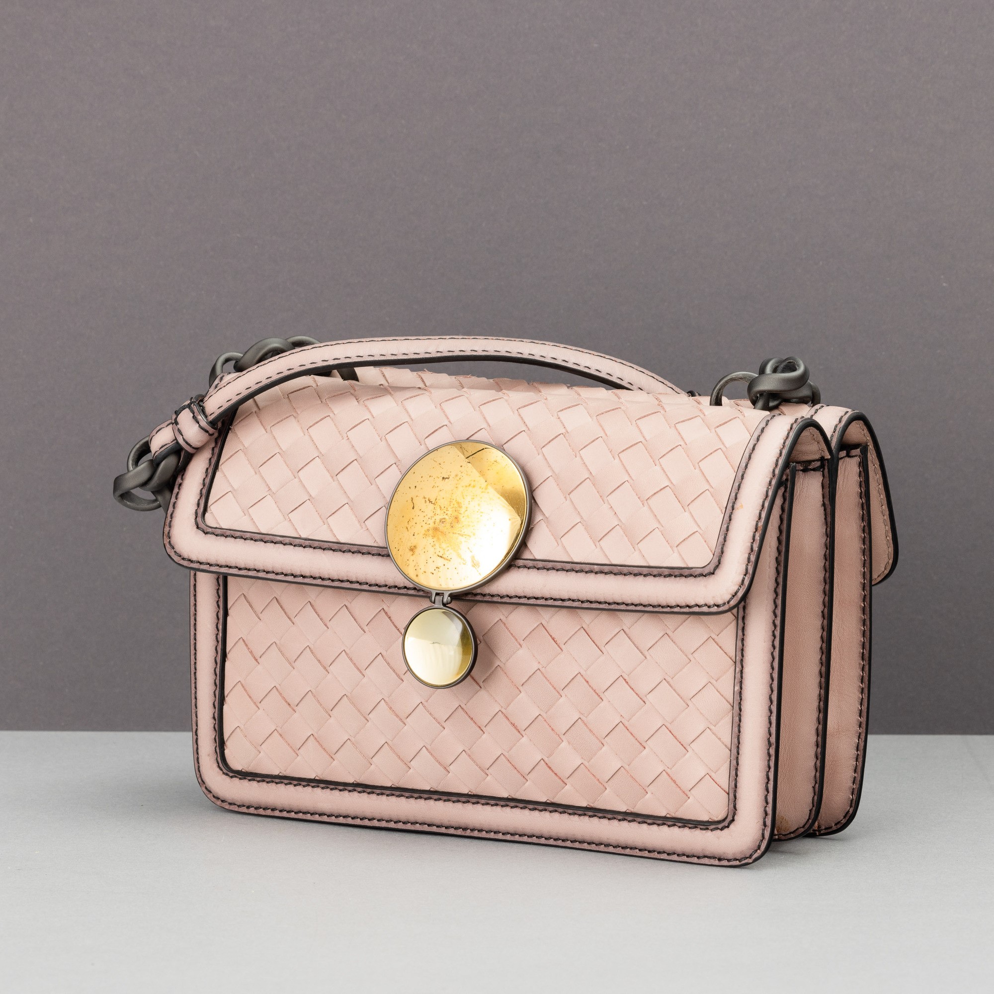 In pelle intrecciata, difetti alla chiusura, in buone condizioni