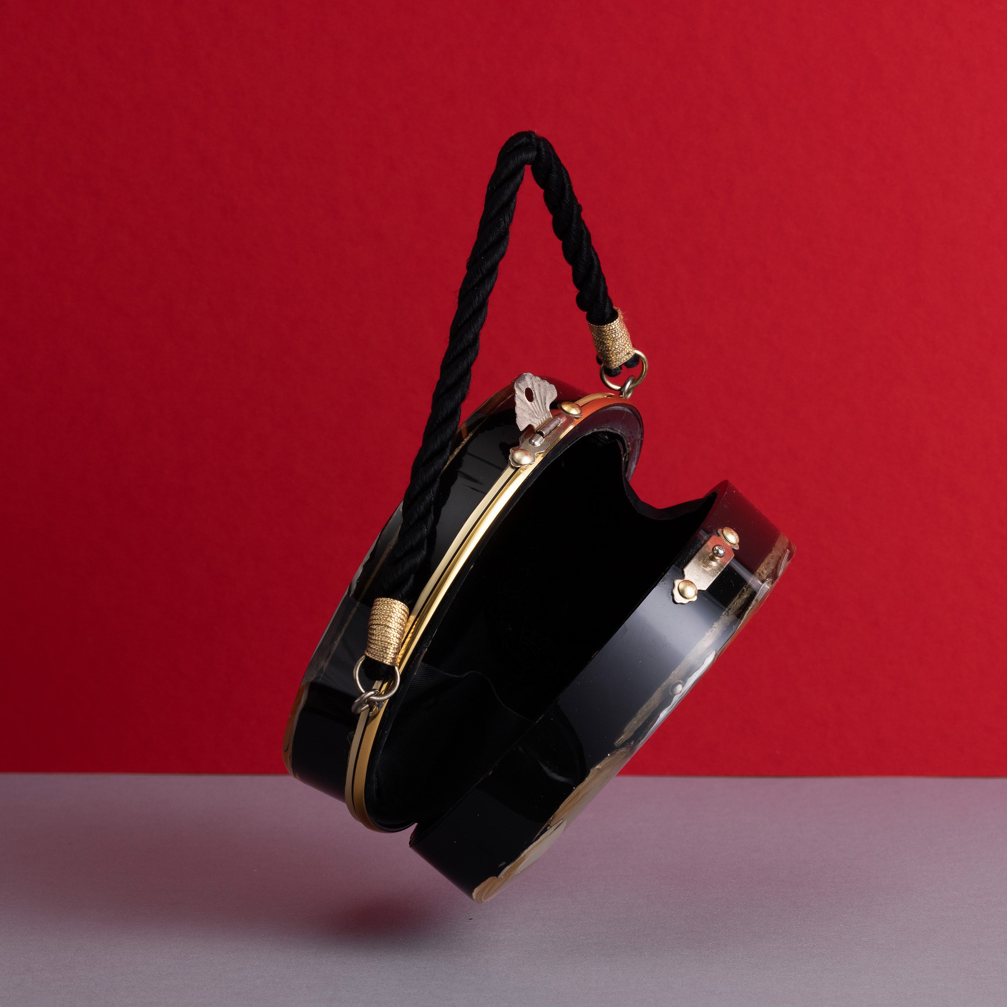 In materiale rigido e resina con decorazioni , in buone condizioni