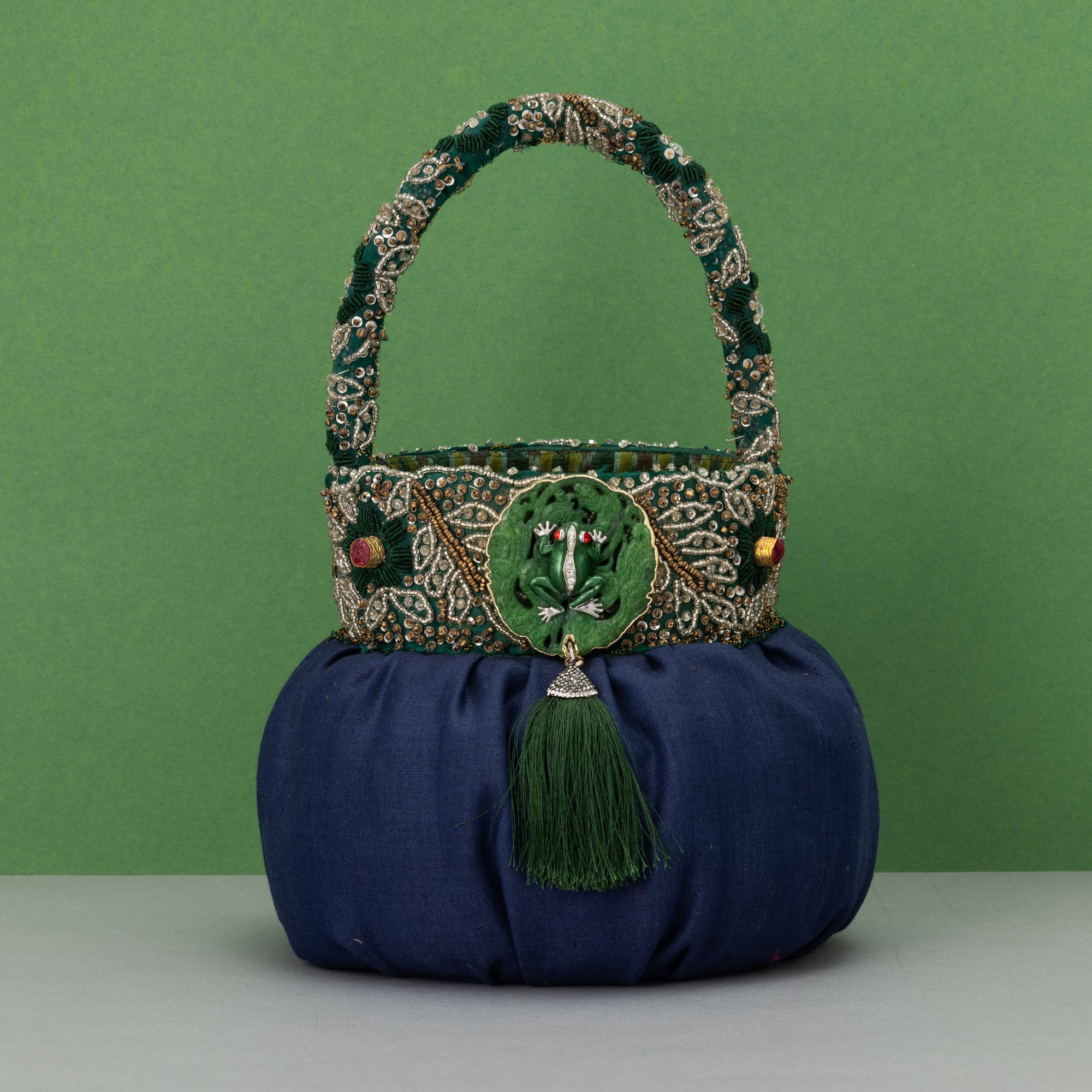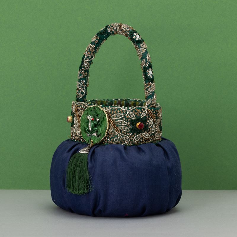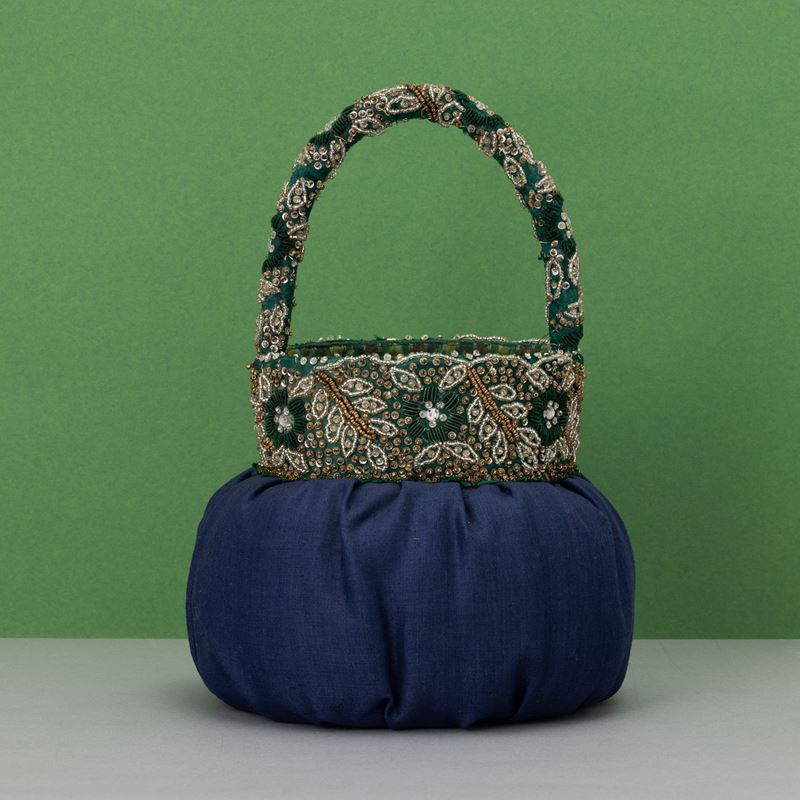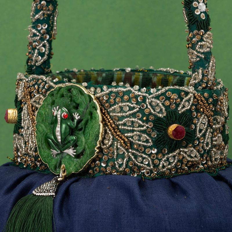 In tessuto con applicazioni preziose, manico in stoffa e applicazioni, con dustbag
