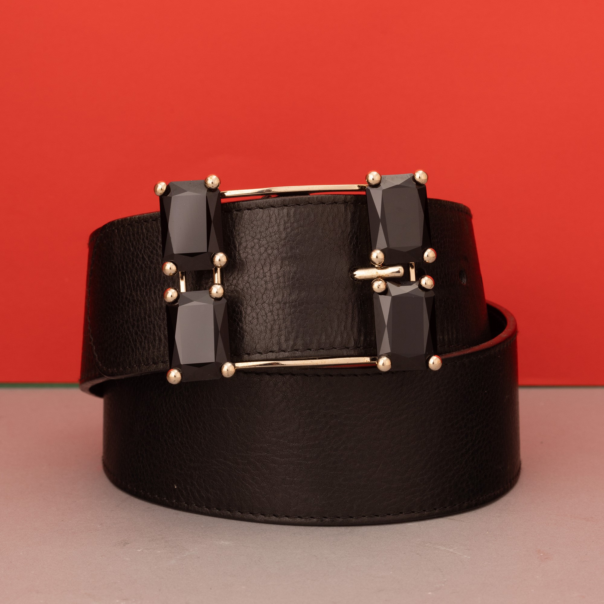 In pelle con fibbia con borchie e inserti neri