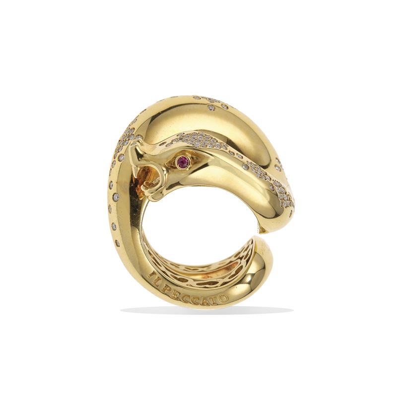 Diamond, ruby and gold “Il Peccato” ring. Signed Pasquale Bruni. Certificate of autheticity