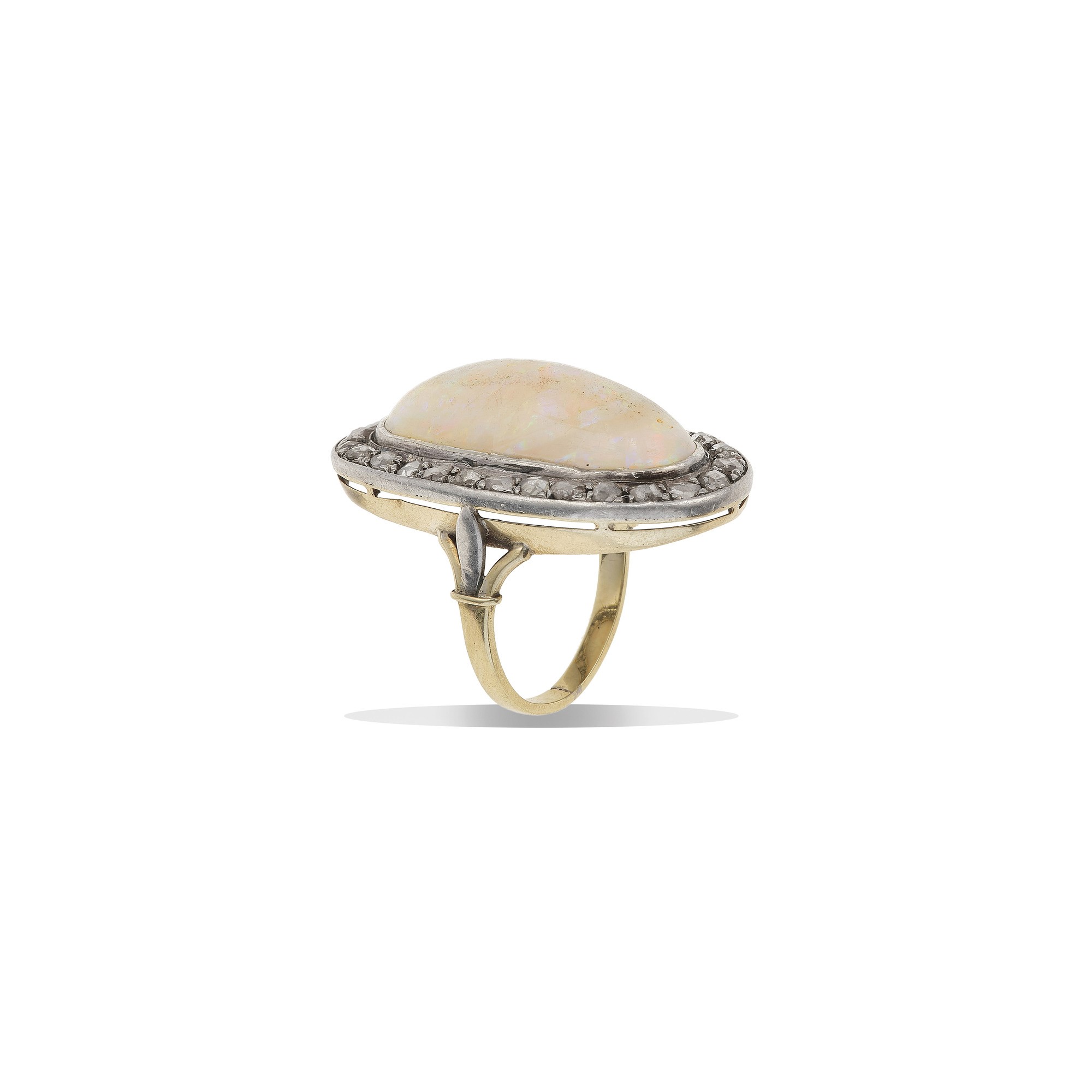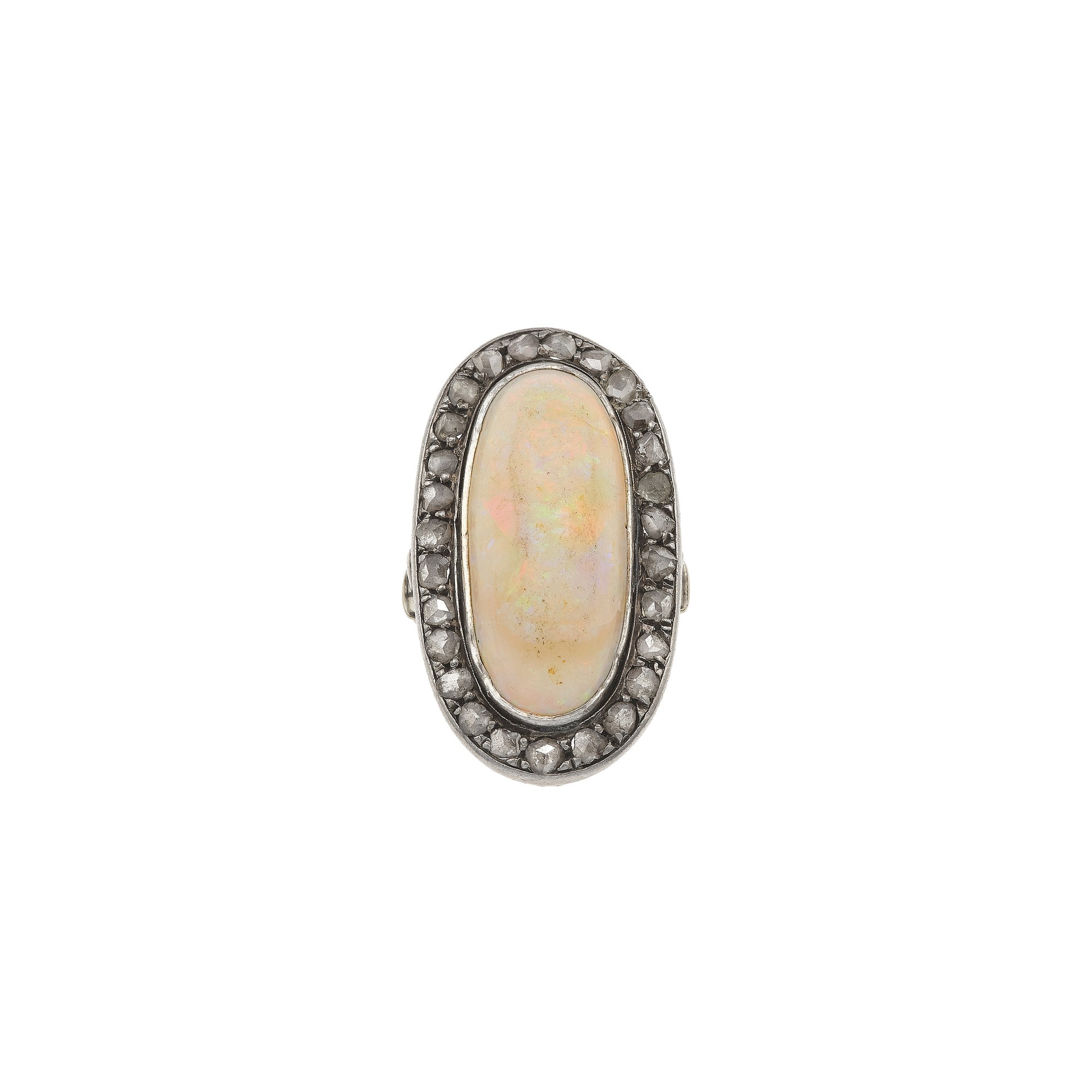 Opal, rose-cut diamond, gold and silver ring