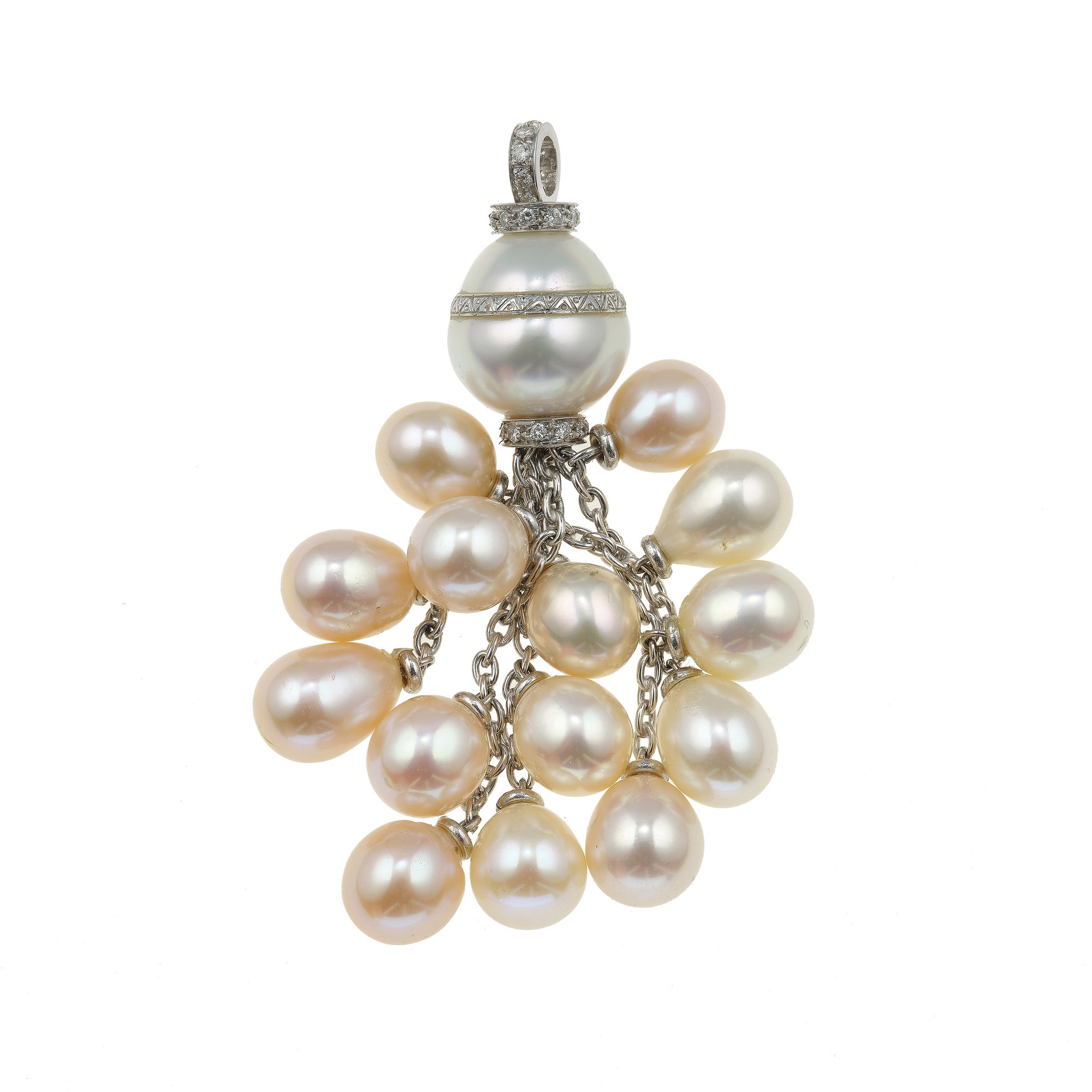 Pearl, diamond and gold pendant