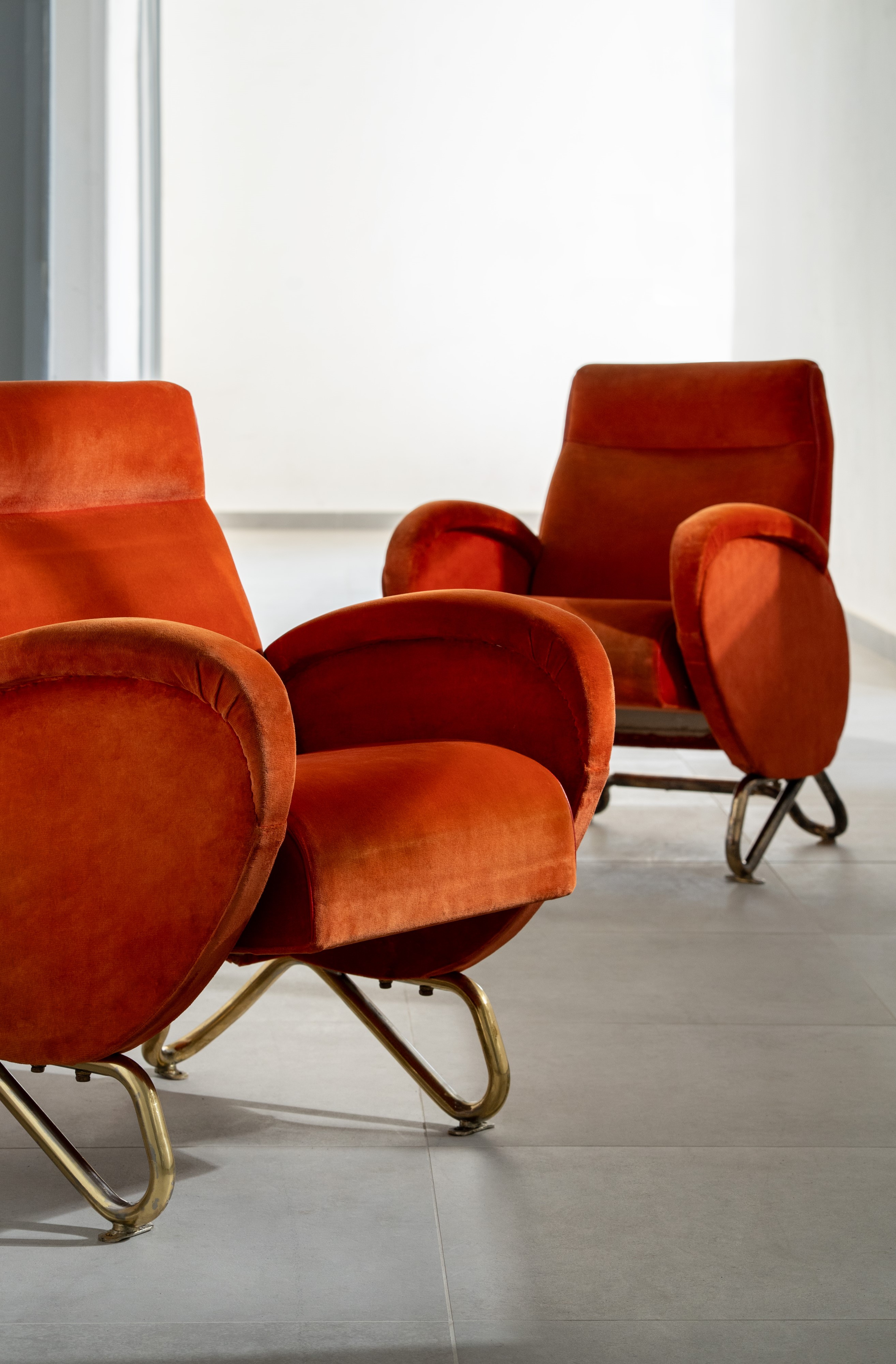 Struttura in legno, sostegni in ottone e rivestimento in velluto.
