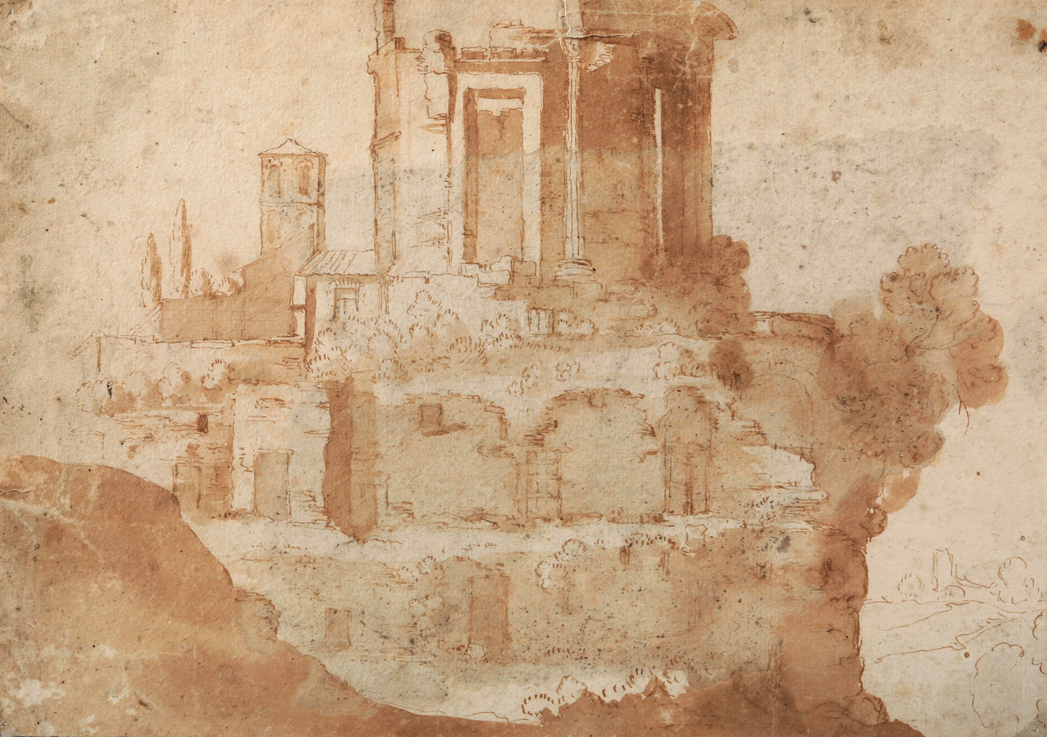 penna, inchiostro bruno e acquerello su carta