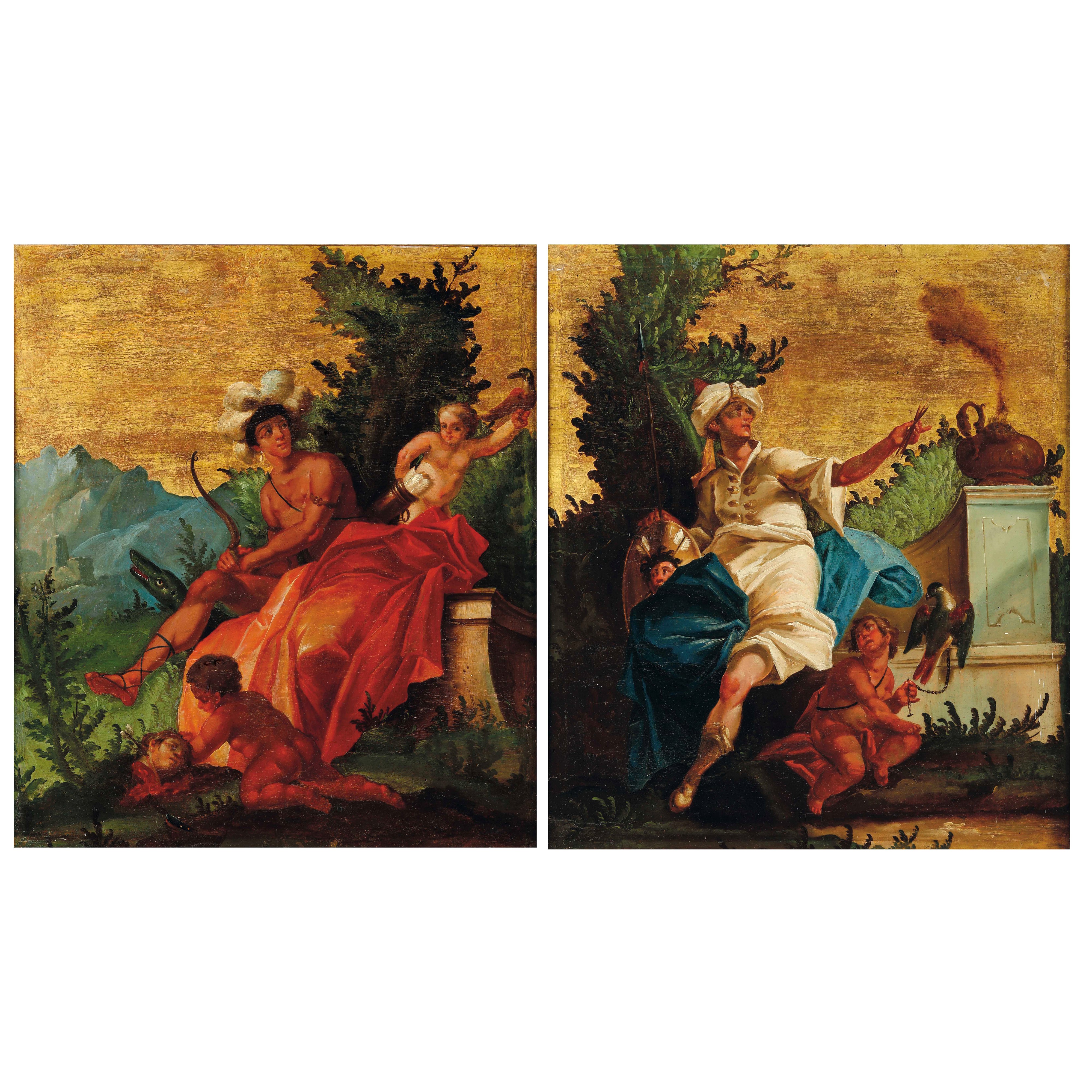 Scuola del XVIII secolo Allegorie dell’America e dell’Asia