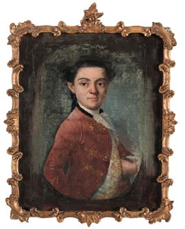 Scuola del XVIII secolo Ritratto di giovane gentiluomo con giubba rossa