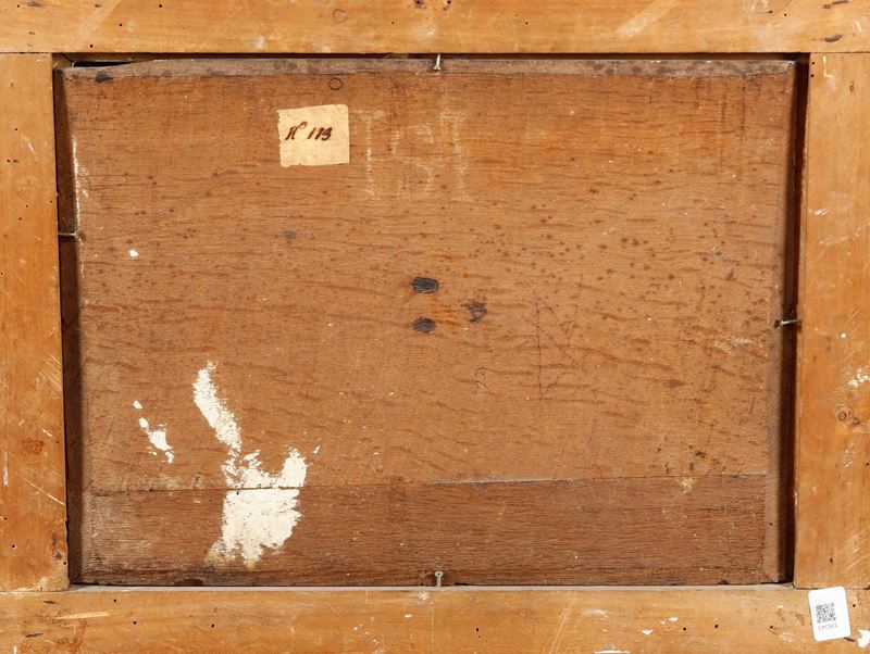reca al retro marchi del produttore di tavole Lambrecht Steens (1608-1632) e vecchia etichetta di inventario
