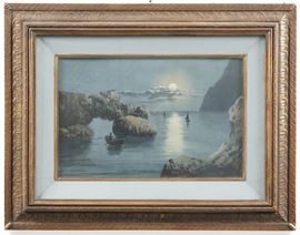A firma M. Gianni (?) Veduta costiera al chiar di luna
