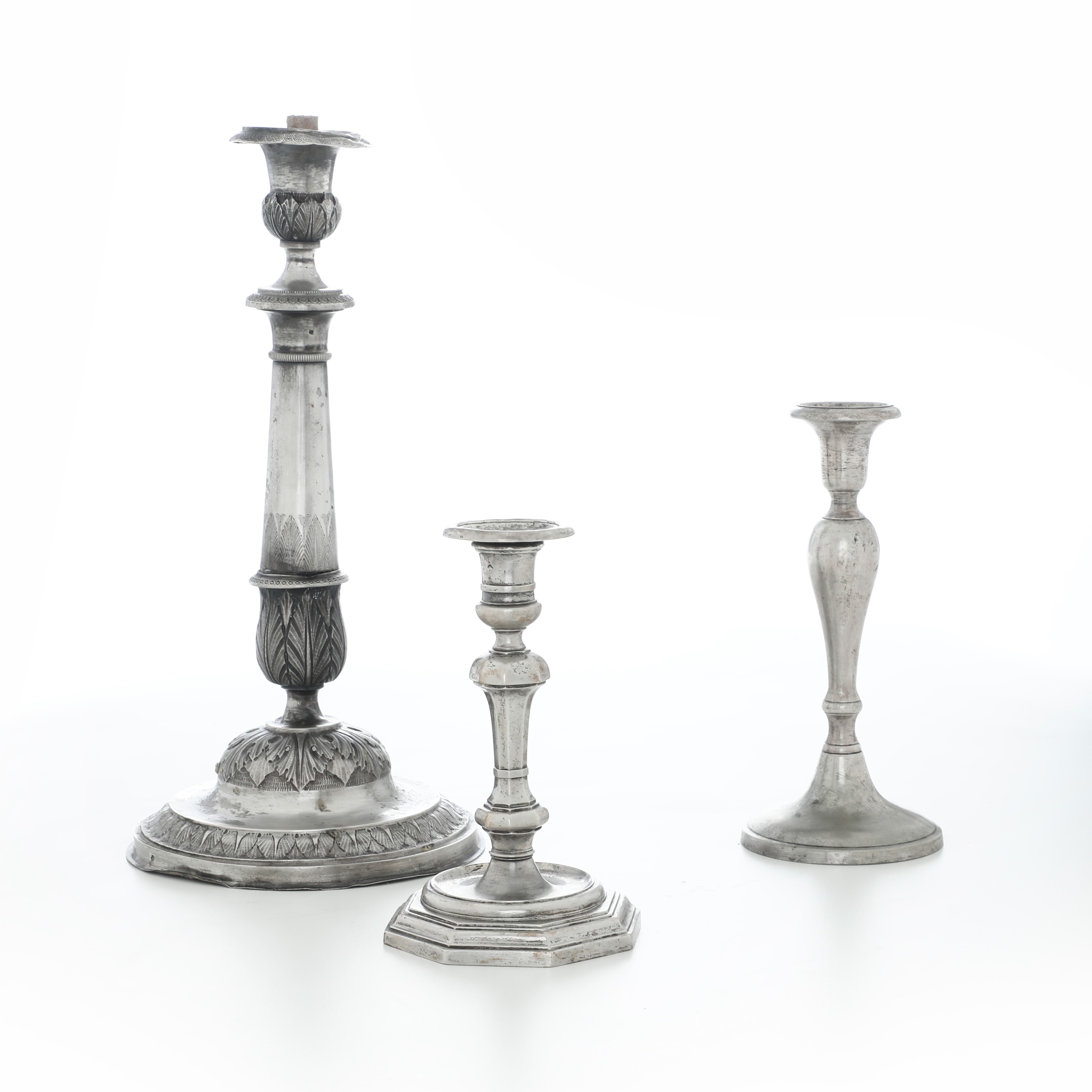 Candeliere a base esagonale, Veneto XVIII secolo e candeliere con decoro neoclassico, Stato Pontificio XIX secolo