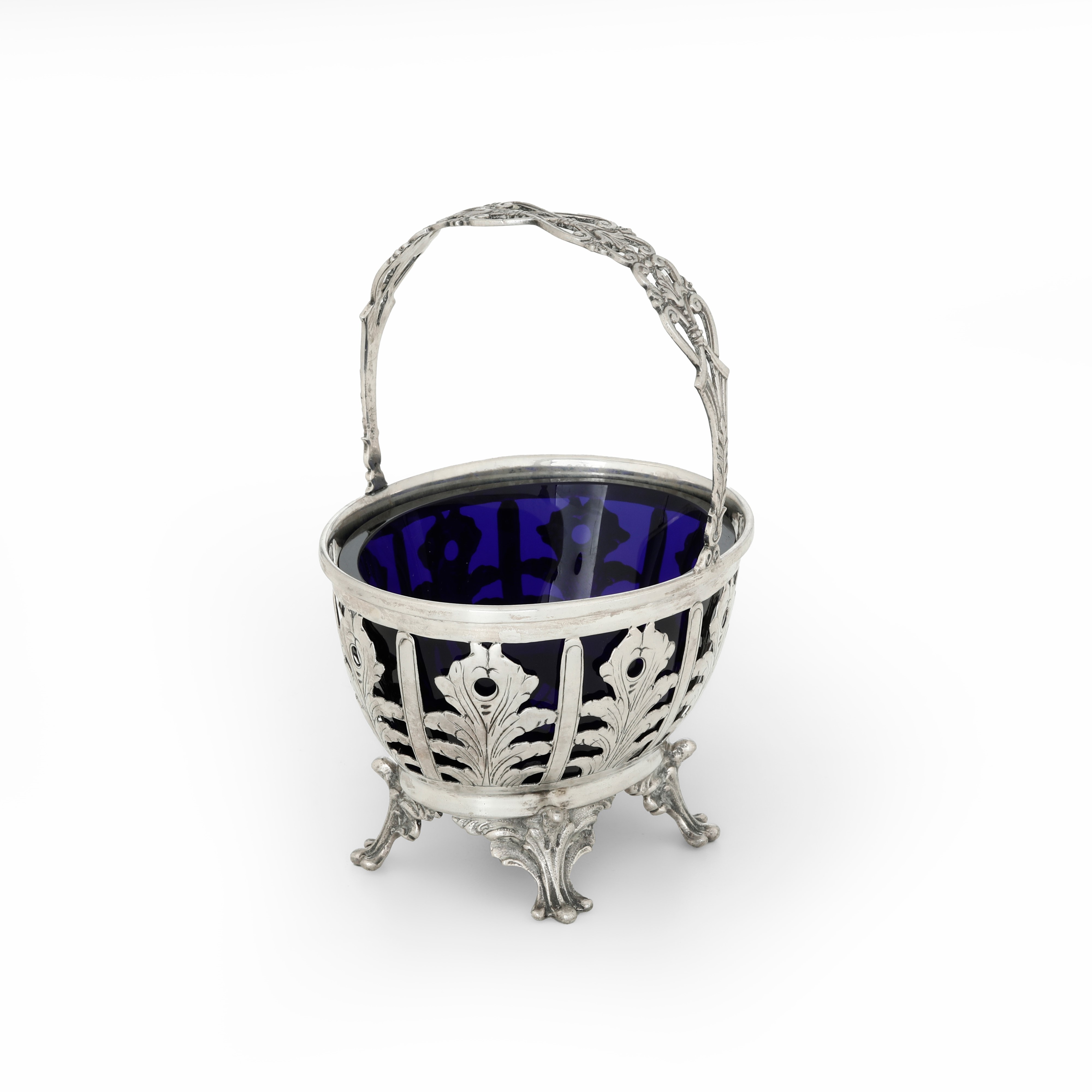 Cestino con ciotola in vetro blu cobalto, apparentemente privo di punzonatura, Europa XX secolo
