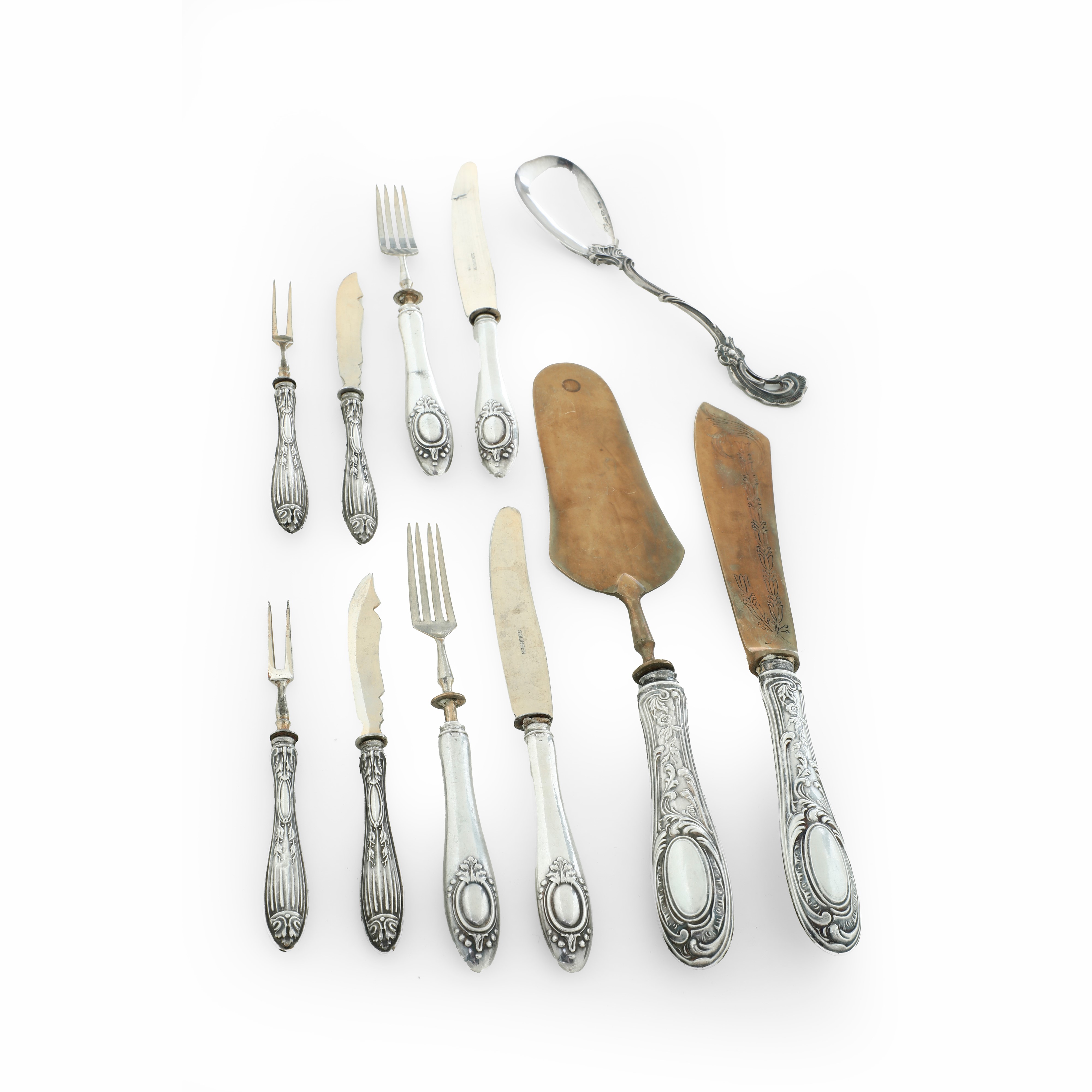 Due parti di servizi di posate diversi. Argenteria italiana della prima metà del XX secolo