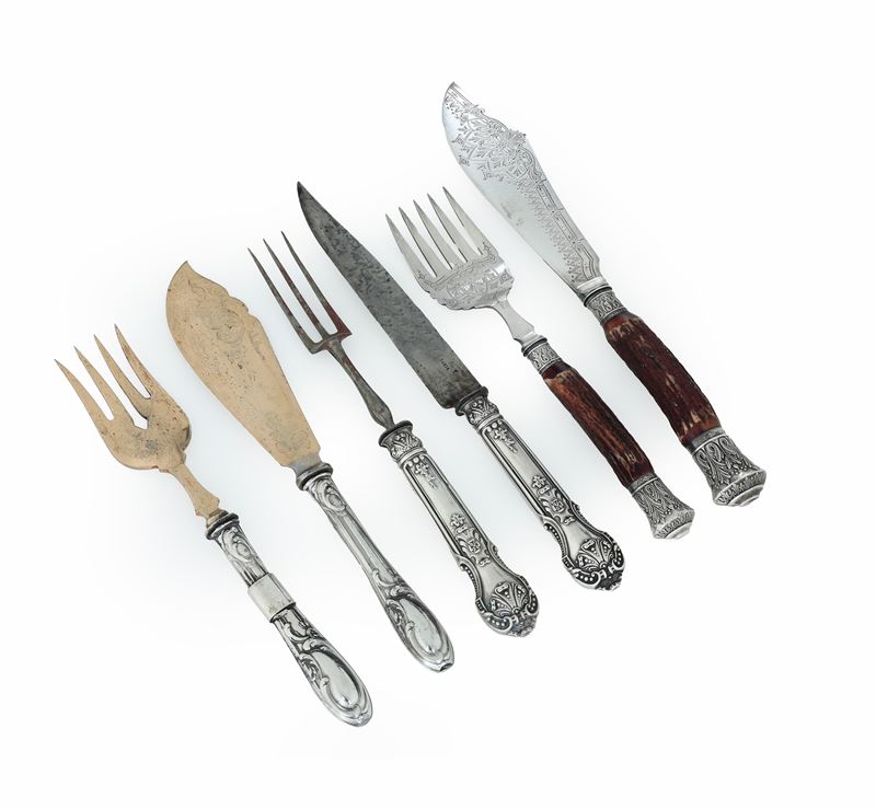Gruppo di tre coppie di posate da portata diverse. Inghilterra XX secolo