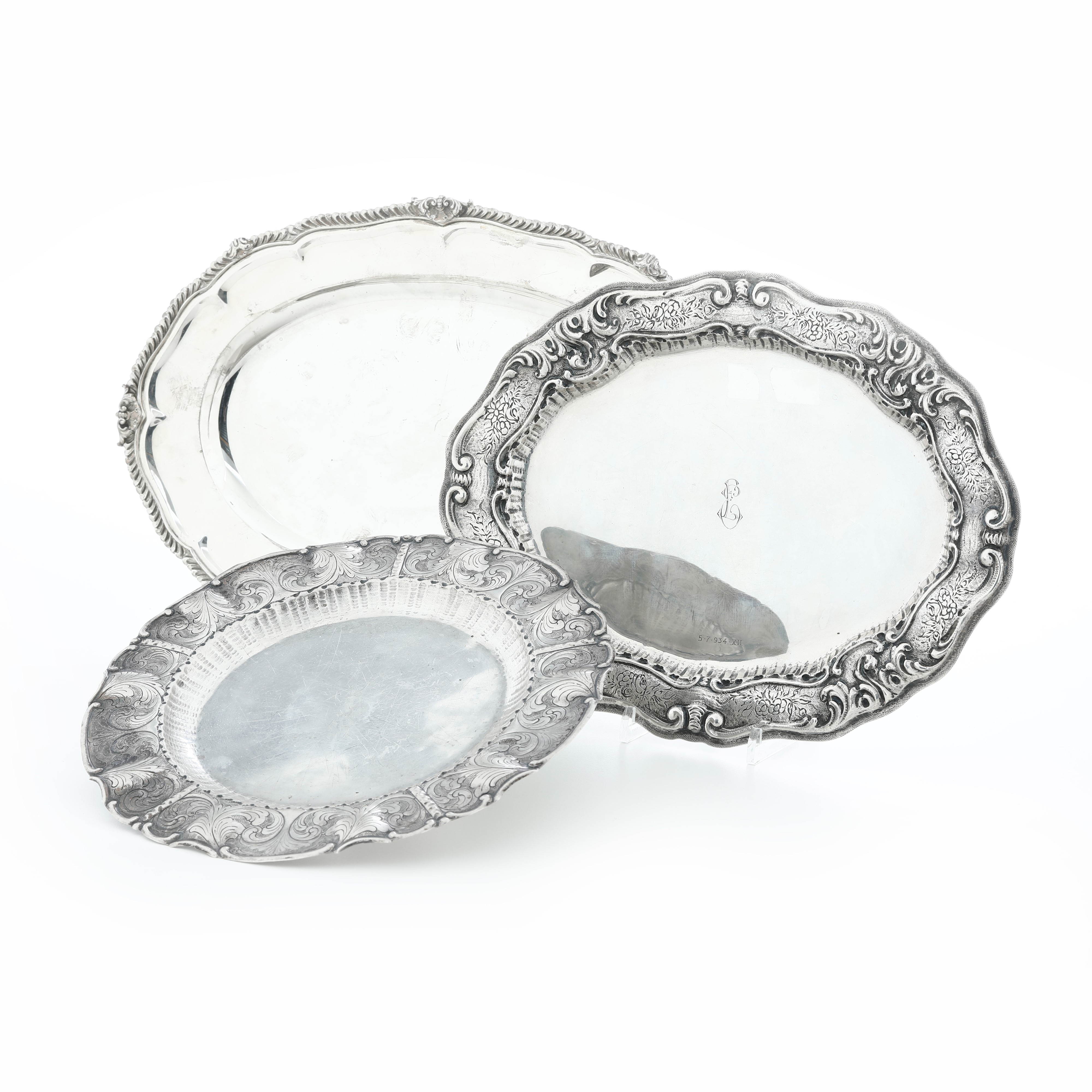 Lotto composto da due vassoietti ovali e un piatto. Argenterie italiane del XX secolo