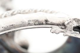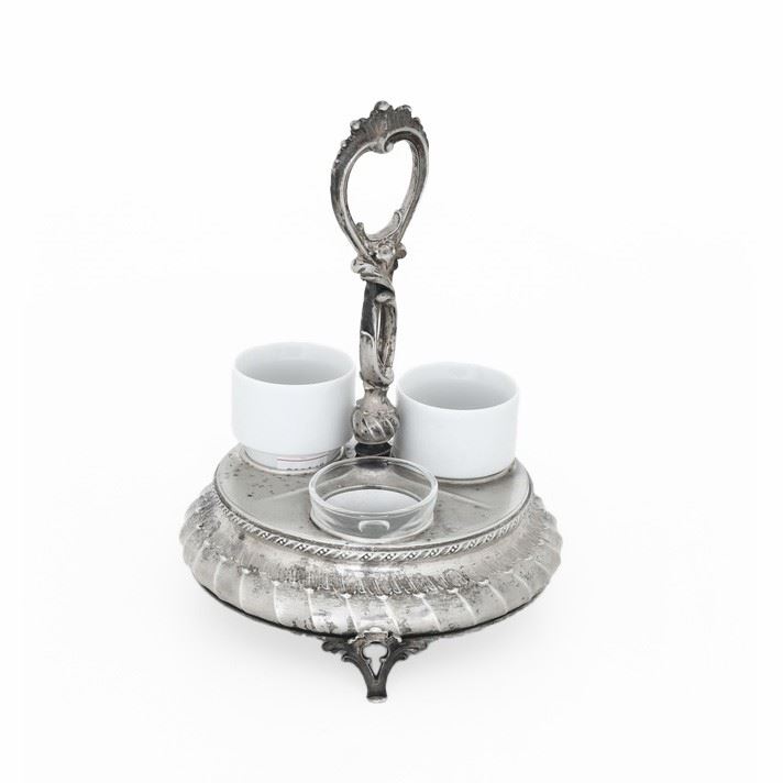Argento fuso e sagomato e due contenitori in porcellana
