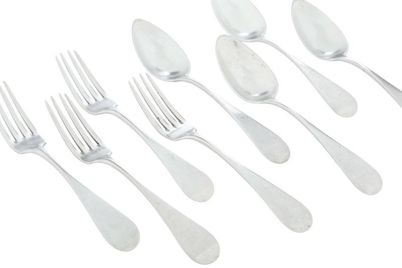 Servizio composto da 14 forchette e 18 cucchiai. Argenteria milanese del XIX secolo