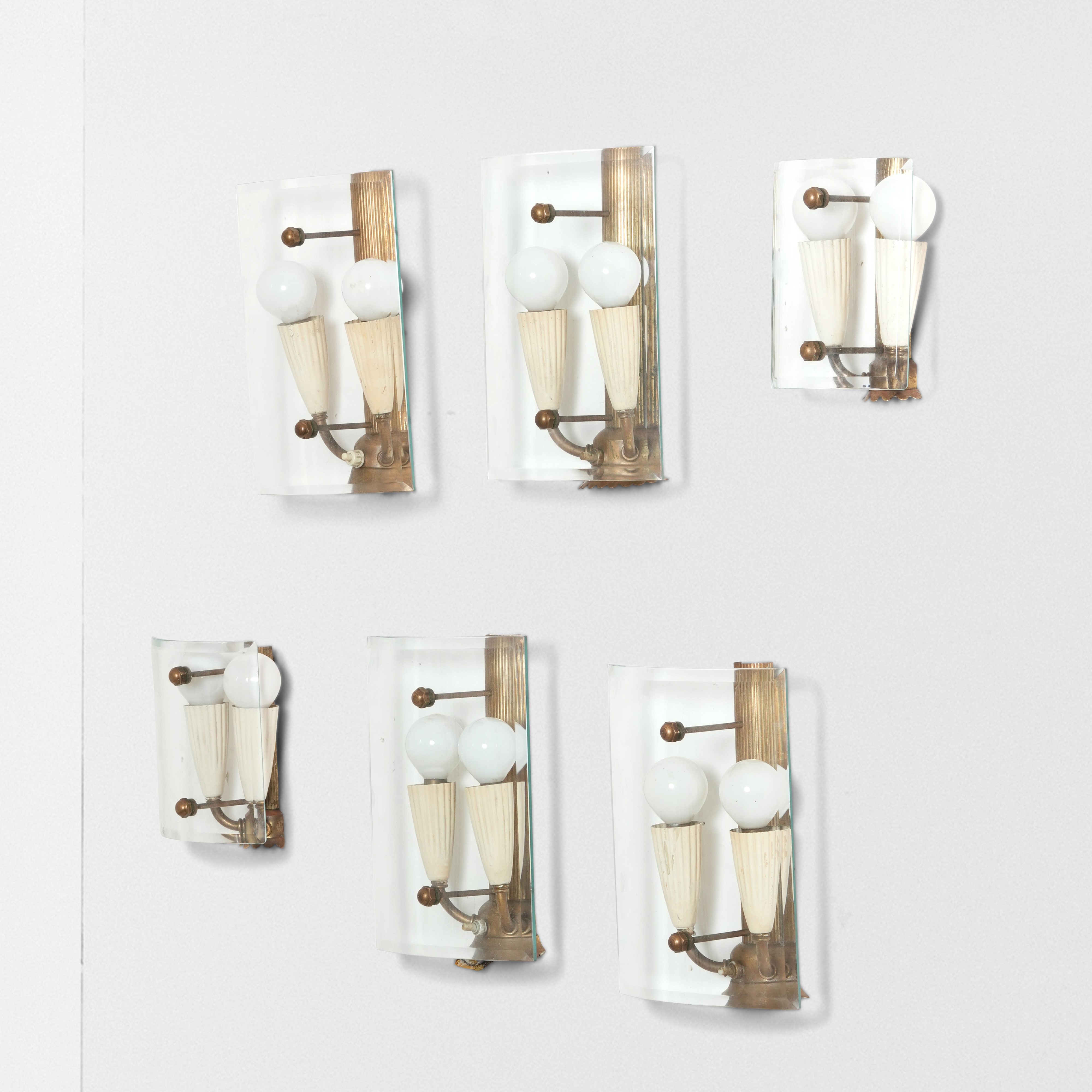 Struttura in ottone e metallo laccato. Diffusore in cristallo molato.