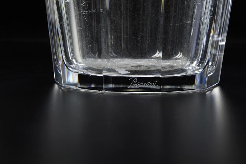 Cristallo. Marca: “Baccarat” inciso; segno grafico con "Baccarat France" inciso all'acido. Dimensioni: altezza cm 23; diametro massimo cm 25. Conservazione: ottima.