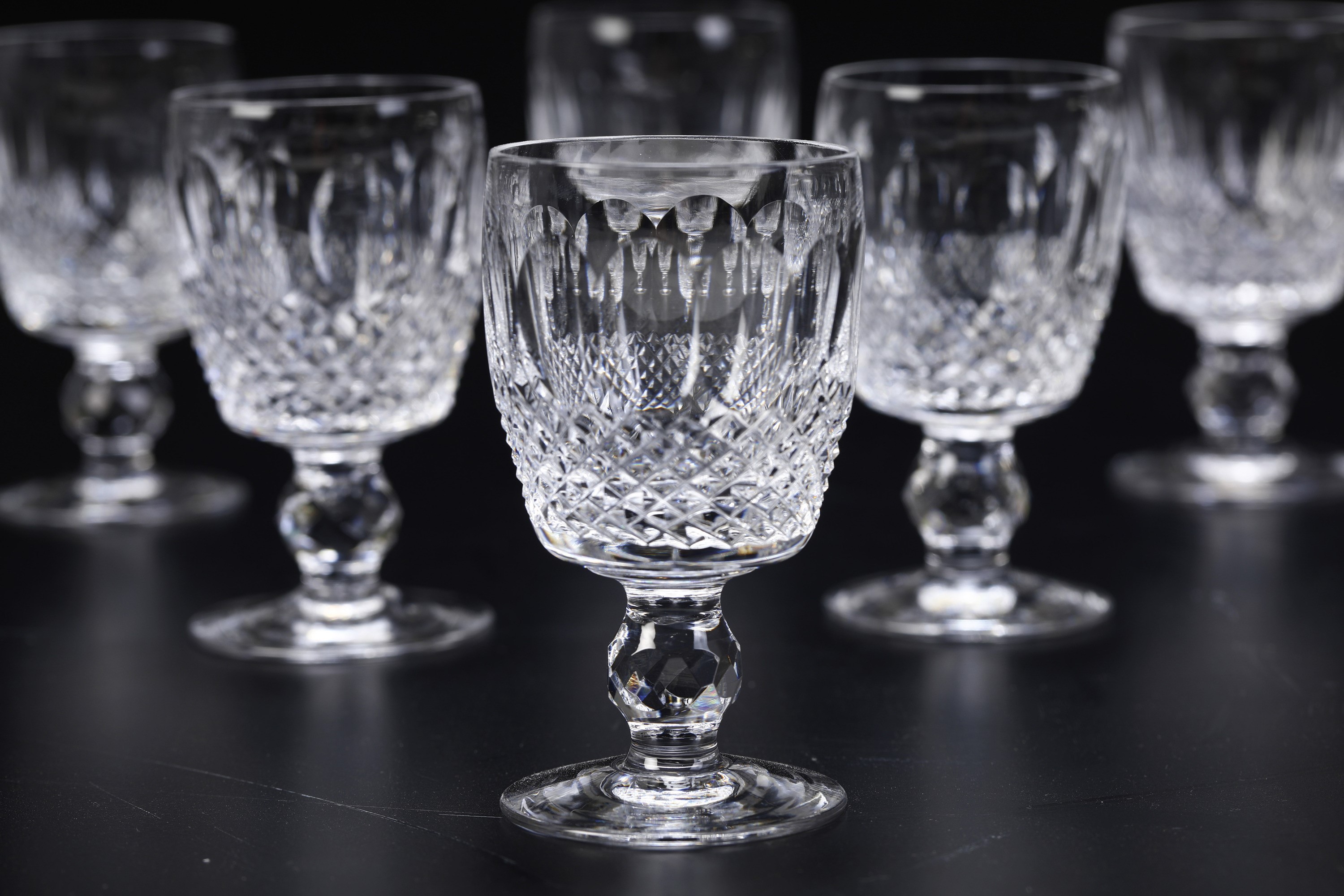 Dodici calici da Sherry. Irlanda, Manifattura Waterford, XX secolo.
