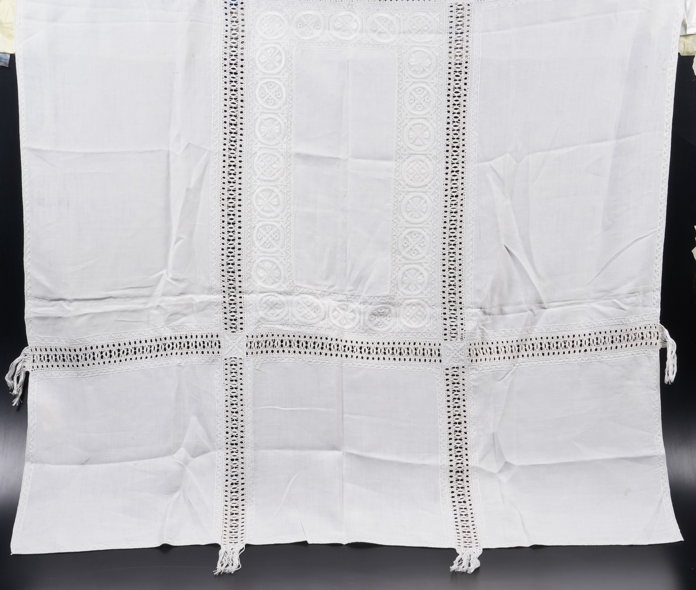 Lino e ricami. Dimensioni: cm 161,5x118; cm 140x115,5.