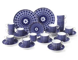 Il servizio è così composto: 6 tazze da caffè espresso; 8 tazze da caffè; 16 piattini; 2 piatti da portata per dolci.
