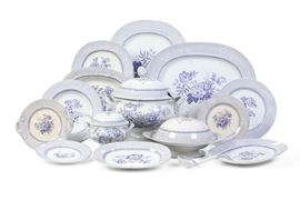 Il servizio conta 79 pezzi ed è così composto: 11 piatti fondi; 37 piatti piani; 13 piatti da dessert; 1 zuppiera; 1 terrina fonda ovale; 3 legumiere con coperchio; 1 salsiera con mestolo; 2 vassoietti tondi con manici; 8 vassoi da portata ovali; 1 appoggia vivande traforato; 1 mestolino.