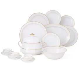 Il servizio per 12 persone conta 59 pezzi ed è così composto: 12 piatti fondi, 24 piatti piani, 12 piatti da dessert, 1 zuppiera, 1 insalatiera, 1 piatto da portata tondo,