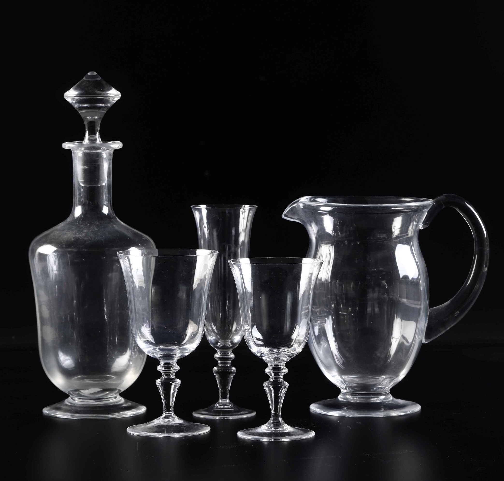 Il servizio per 8 persone conta 26 pezzi ed è così composto: 8 calici da acqua; 8 calici da vino; 8 flûtes; 1 caraffa; 1 bottiglia.