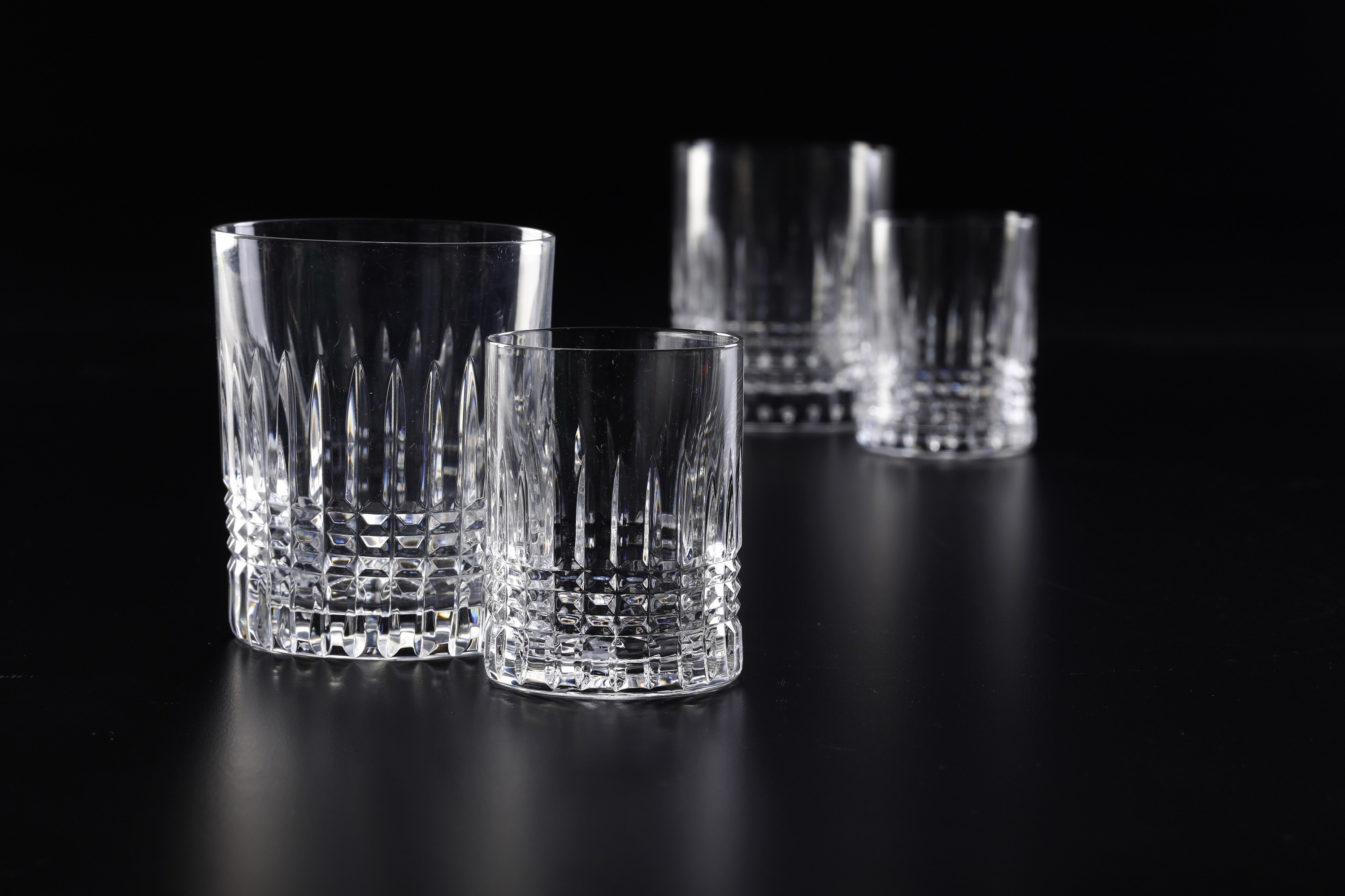 14 bicchieri da acqua (altezza cm 10); 27 bicchieri da vino (altezza cm 8); 18 tumbler (altezza cm 18 circa)