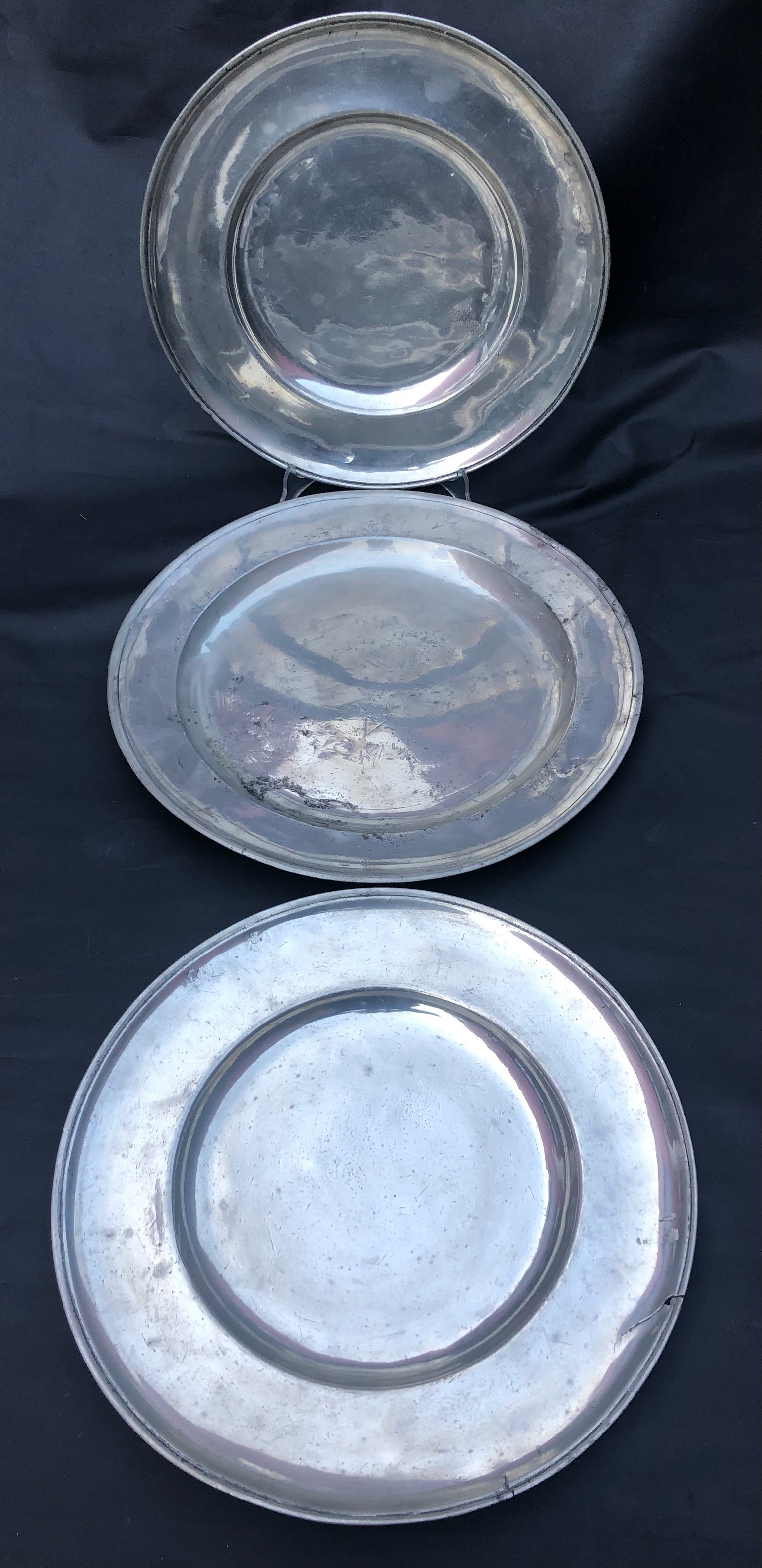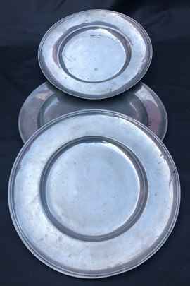 3 ANTICHI GRANDI PIATTI IN PELTRO.