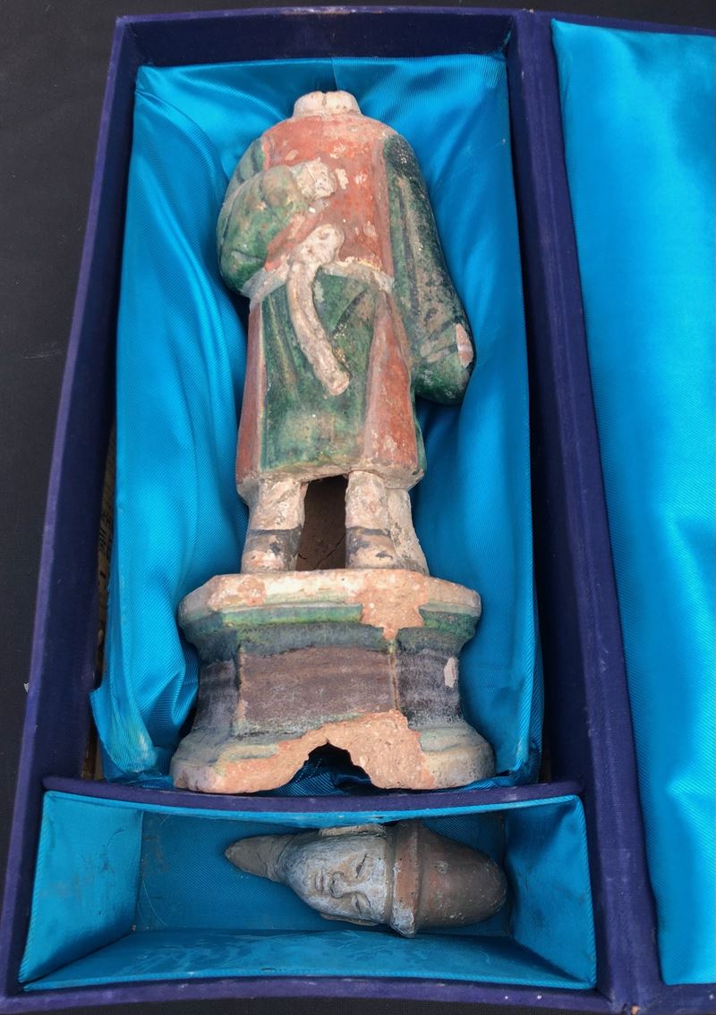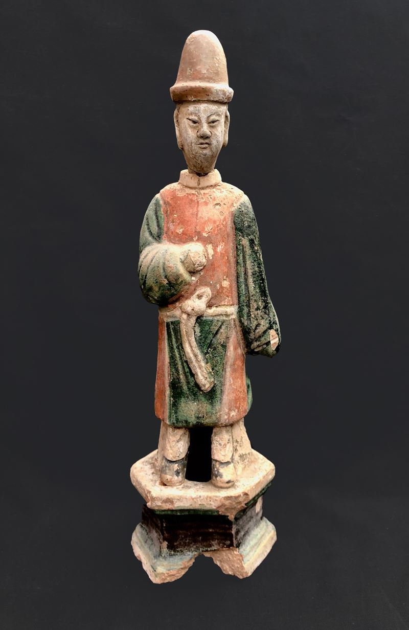CINA, DIGNITARIO IN TERRACOTTA SMALTATA. DINASTA MING, XVI SECOLO
