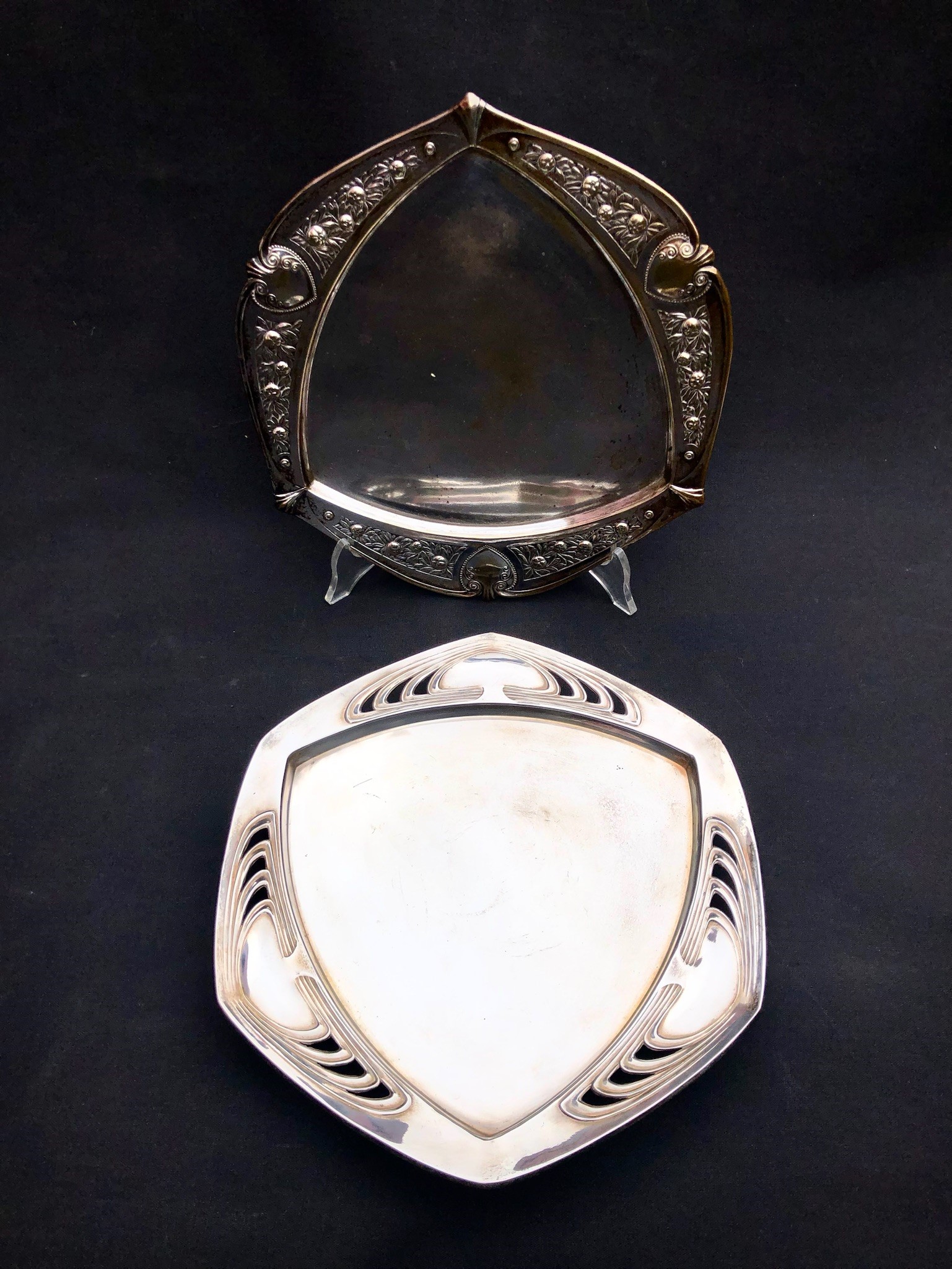 DUE VASSOI LIBERTY IN METALLO ARGENTATO