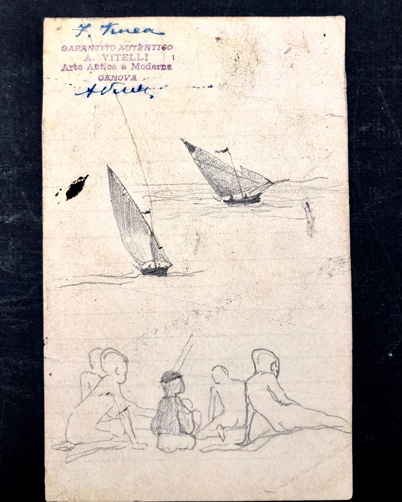 Un disegno con autentica del perito A.Vitelli di Genova. Alcune carte disegnate su due fronti, la più grande cm 24 x 13,5.