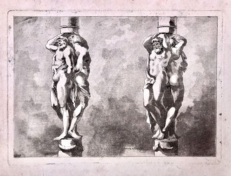una da Carracci, l’altra da Guido Reni, realizzate all’acquatinta e stampate su un unico foglio. Entrambe firmate in basso a dx e datate 1772.