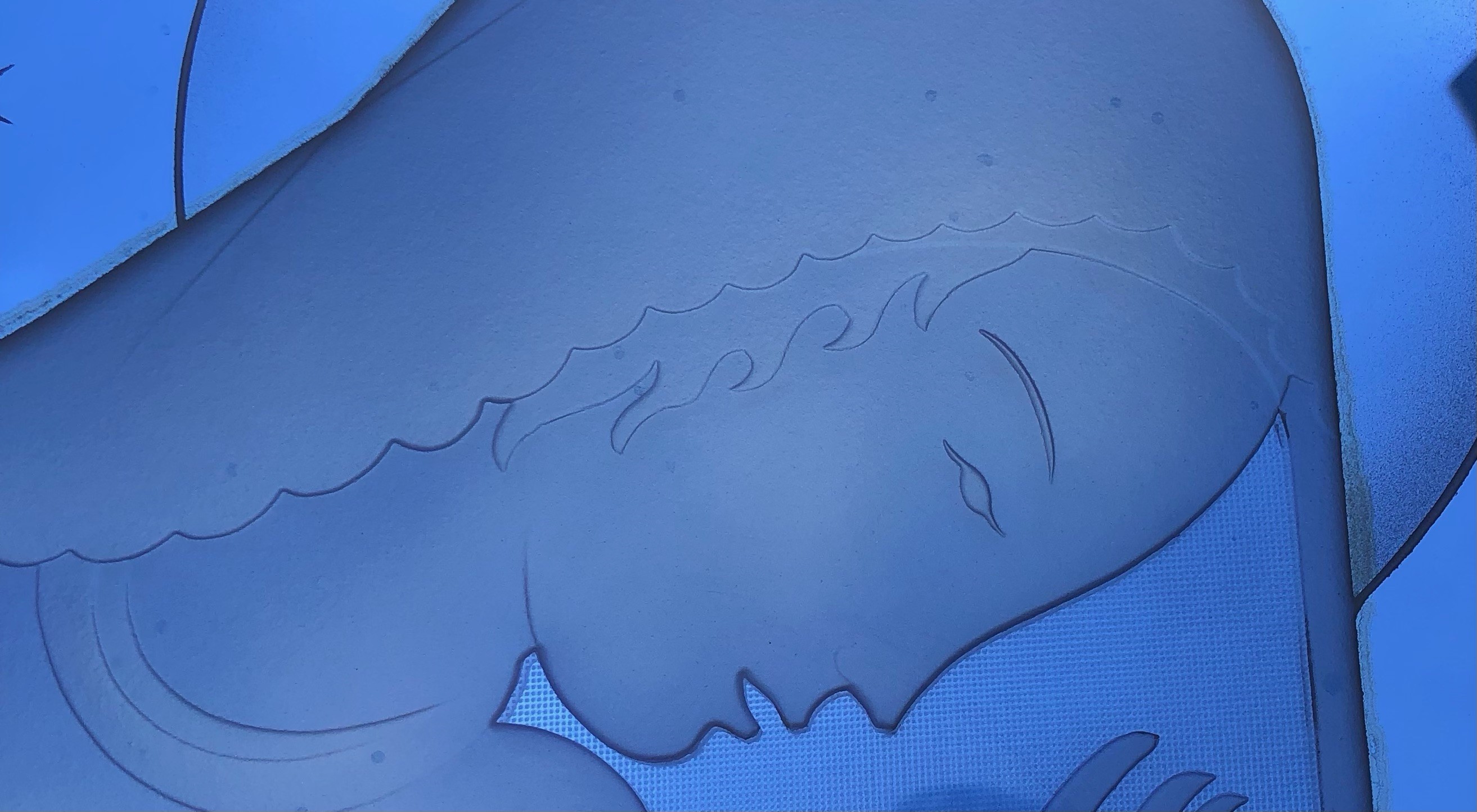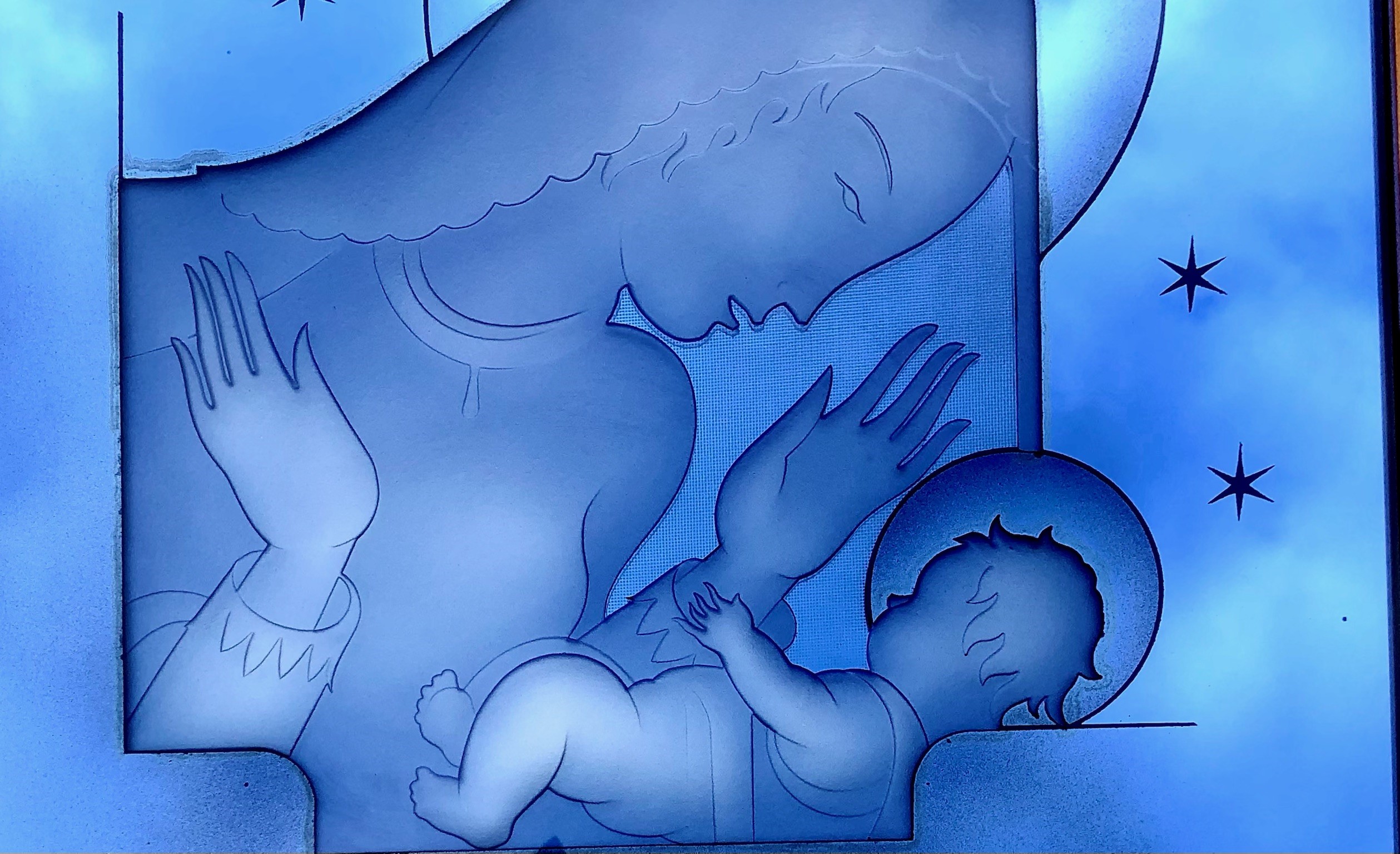 vetro con una dominante azzurra decorato mirabilmente alla mola.