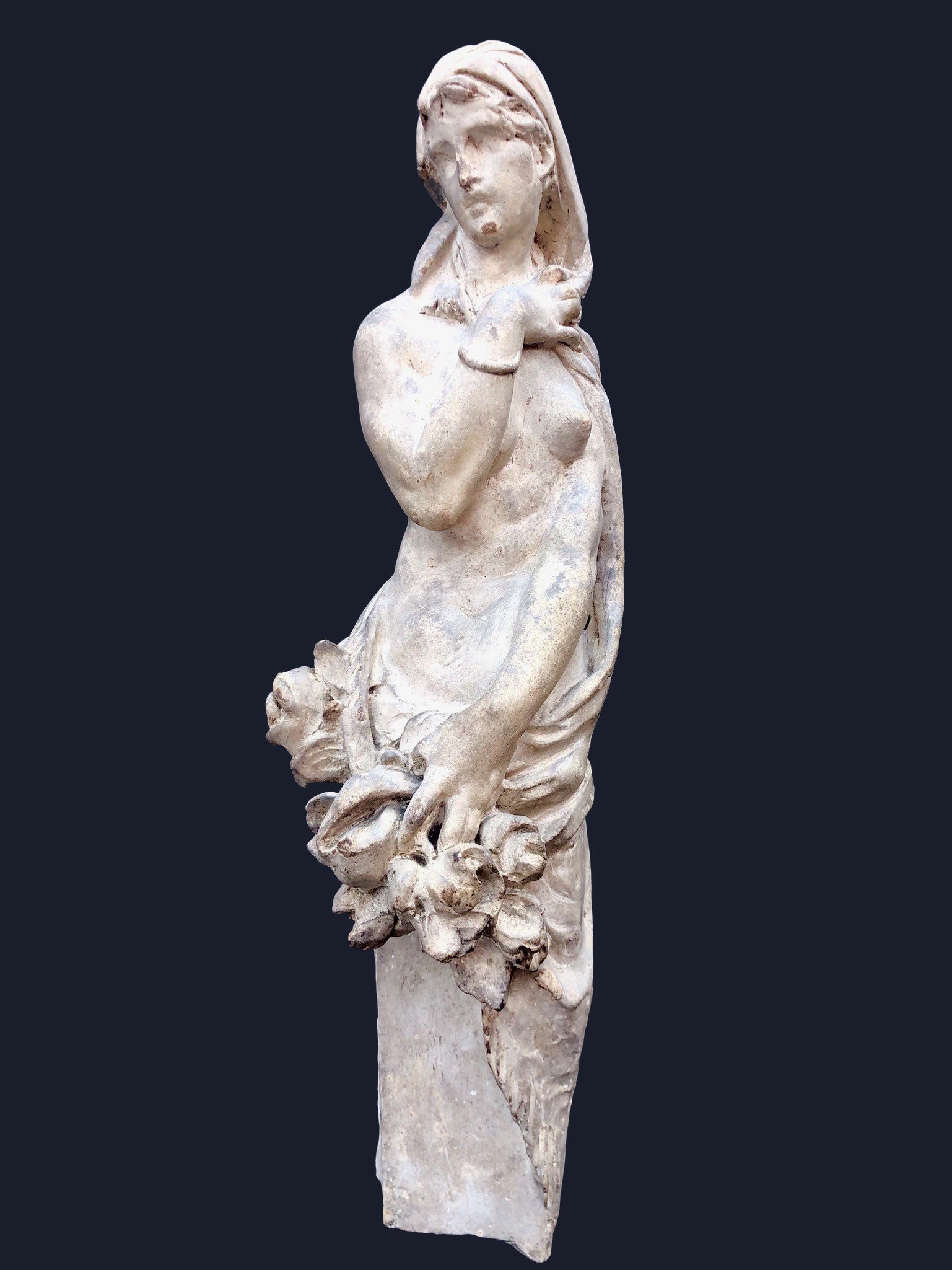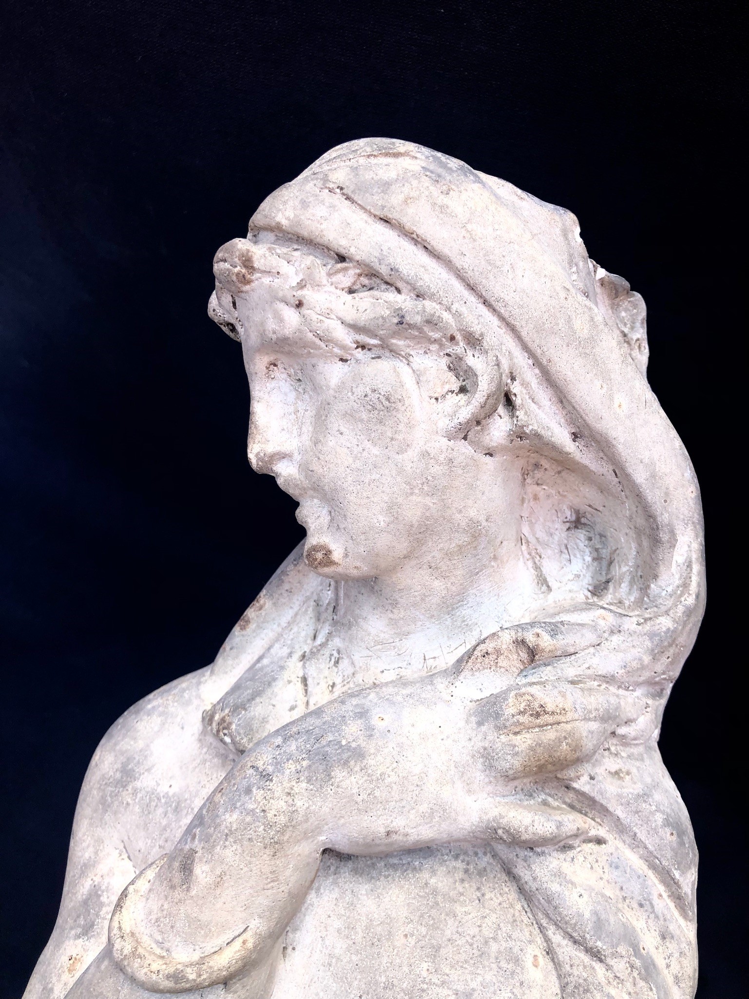 SCULTORE LIBERTY, FIGURA FEMMINILE CON SERTO FLOREALE, STUDIO IN GESSO