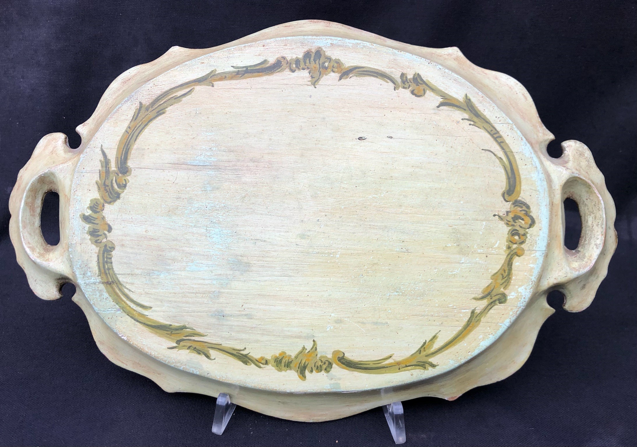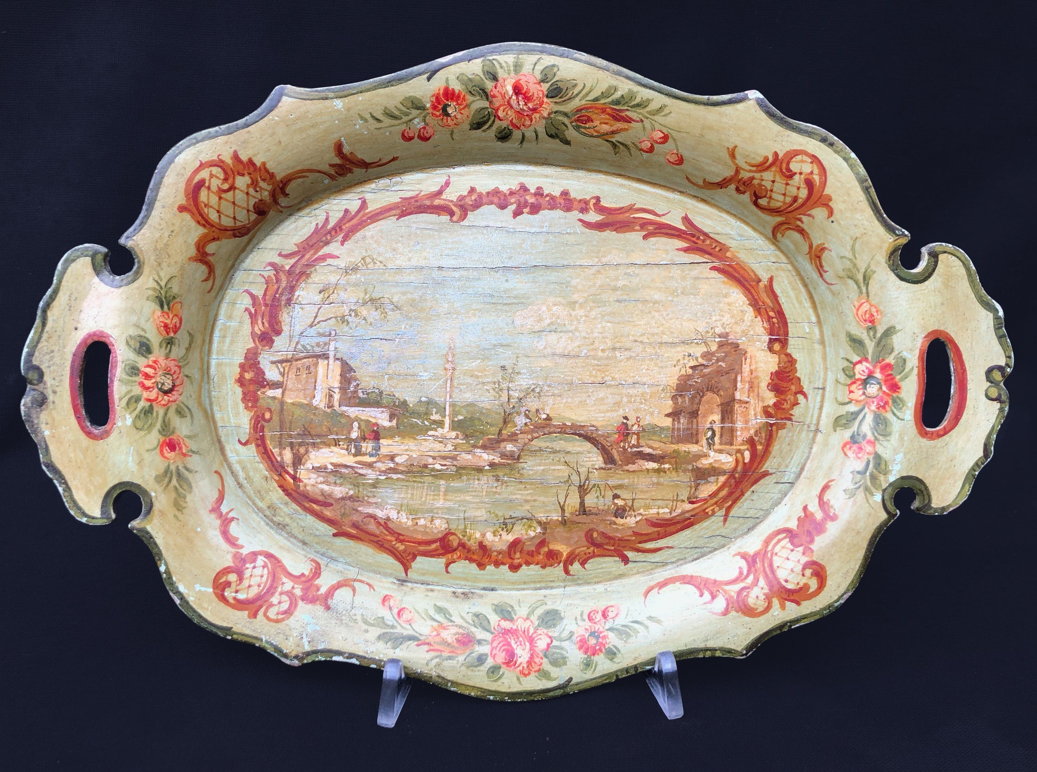 VENEZIA, ANTICO VASSOIO INTAGLIATO E DIPINTO