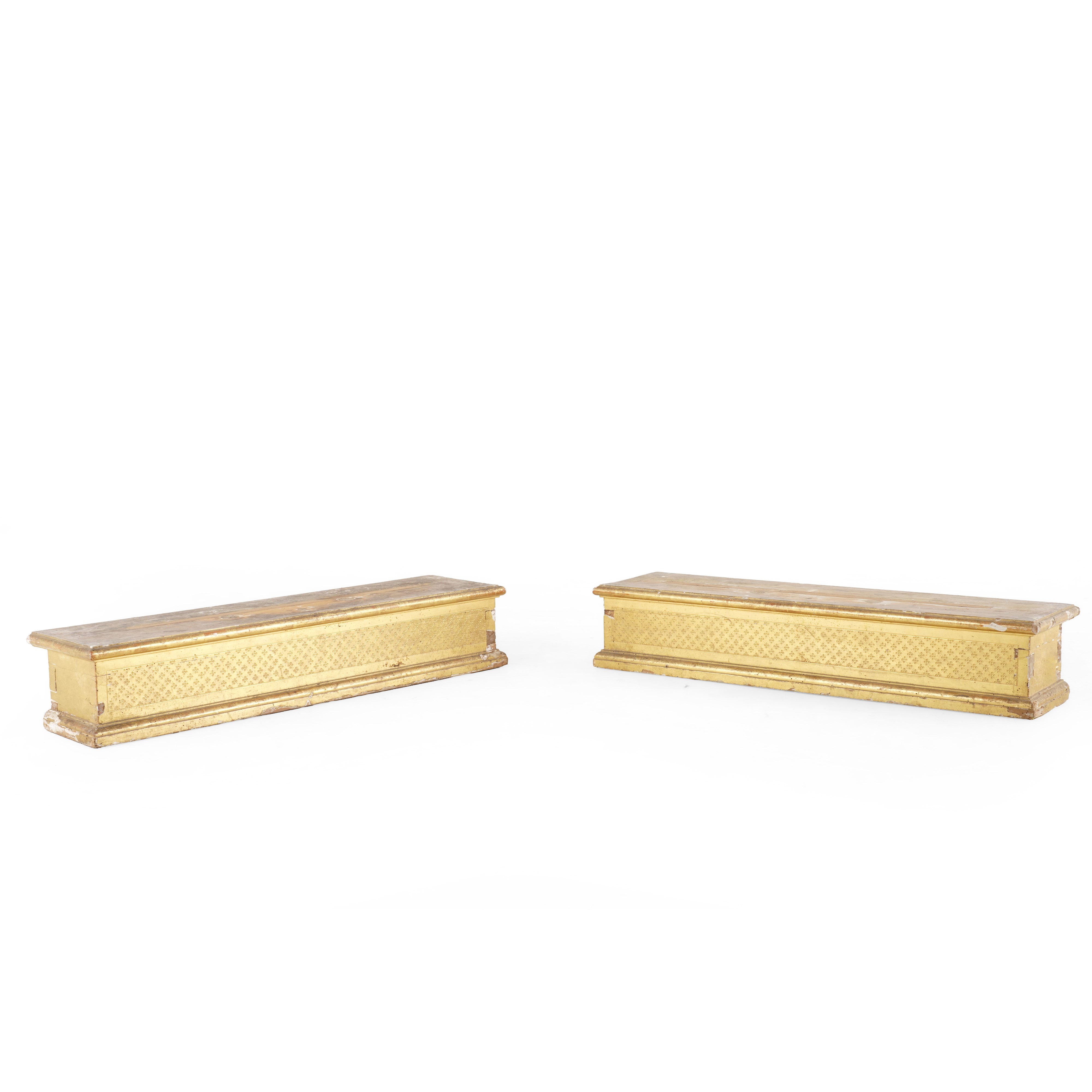 Coppia di basi rettangolari dorate. XIX-XX secolo