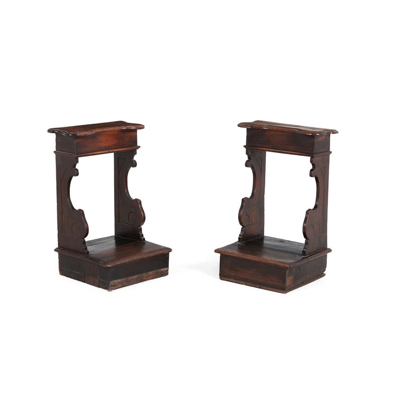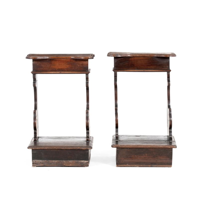 Coppia di inginocchiatoi in legno di noce. XVIII secolo