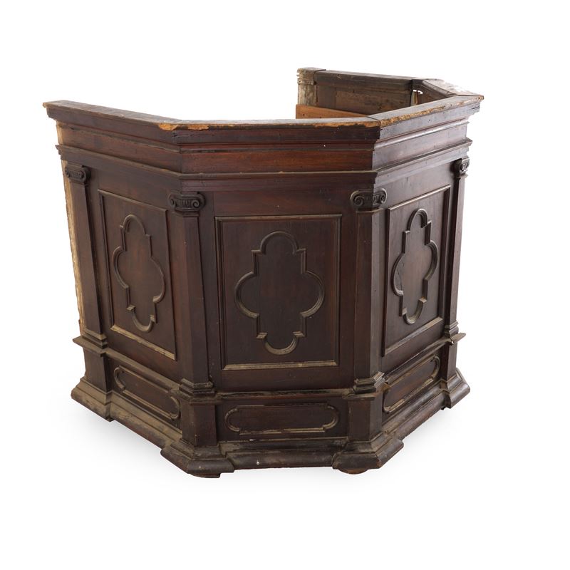 Pulpito in legno intagliato a pannelli. XIX secolo