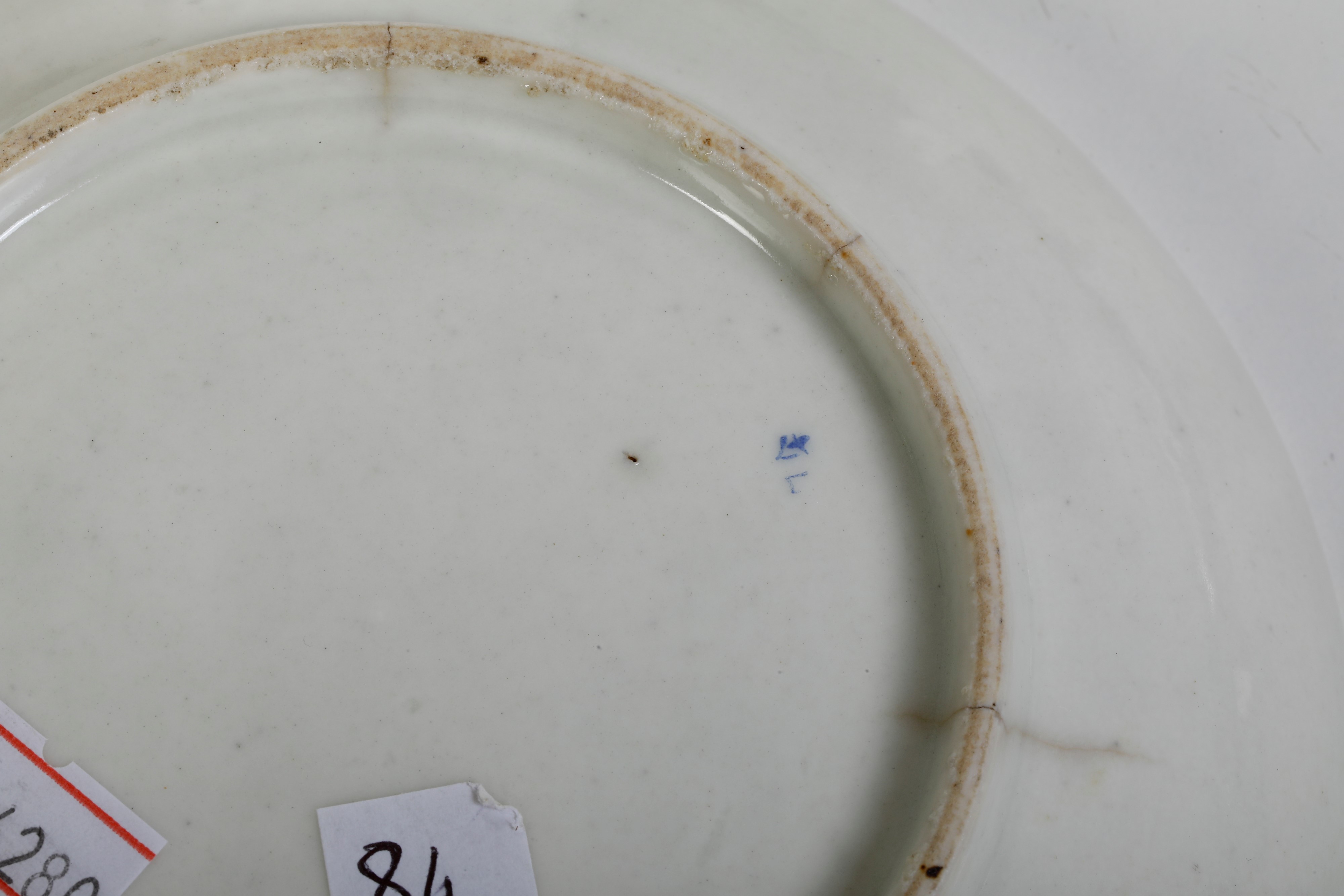 Porcellana. Marca: “V” con “+” e “L” in blu. Diametro cm 15,5. Conservazione: ottima; insignificanti usure alla policromia