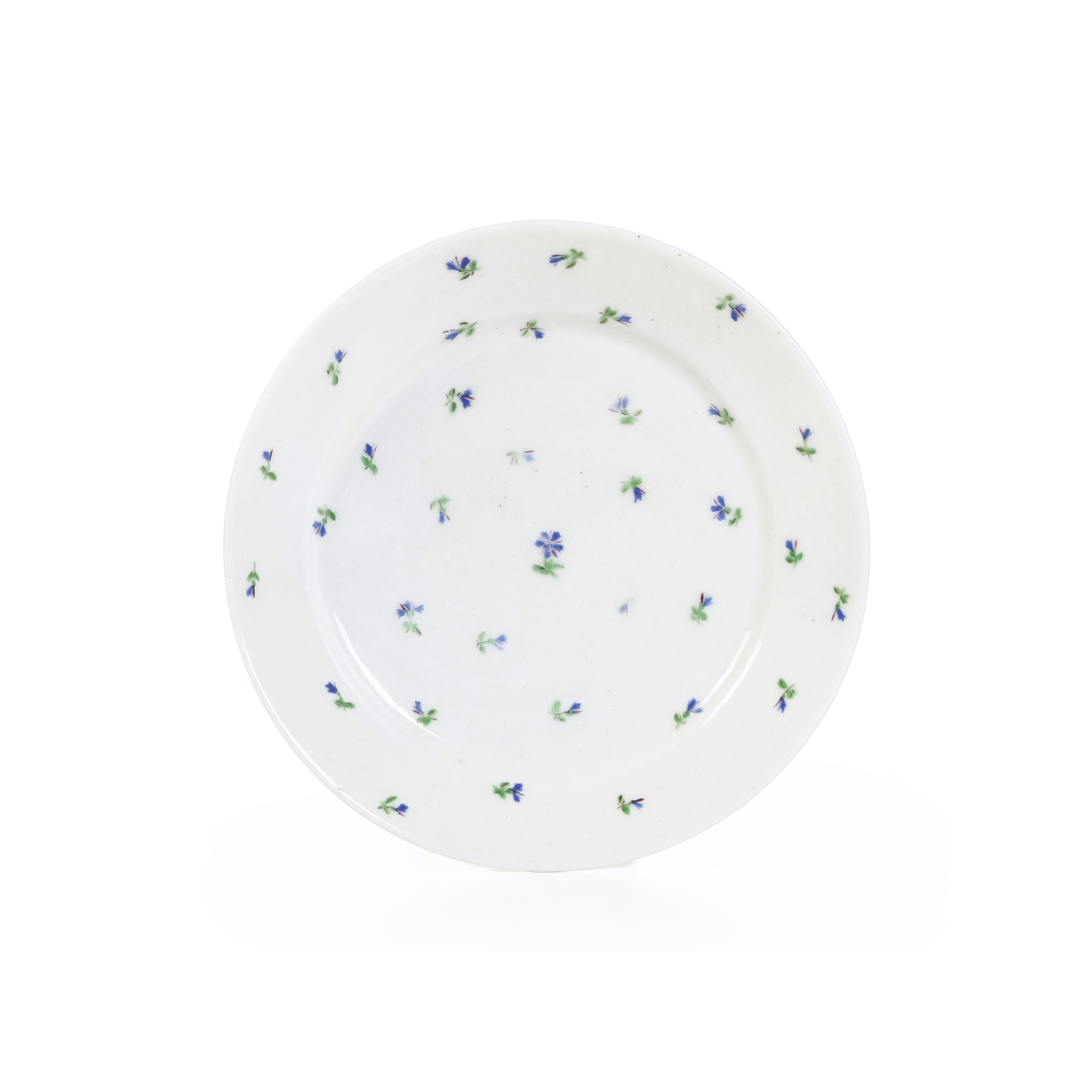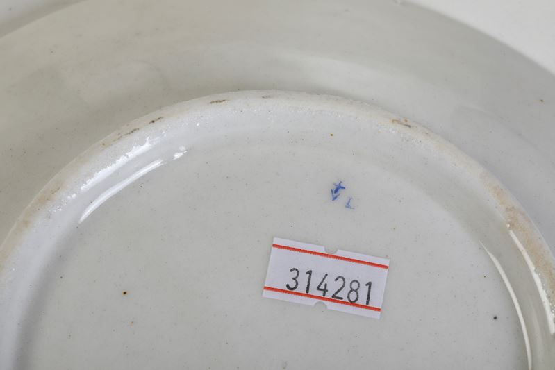 Porcellana. Marca: “V” con “+” e “L” in blu. Diametro cm 19. Conservazione: ottima; insignificanti usure alla policromia
